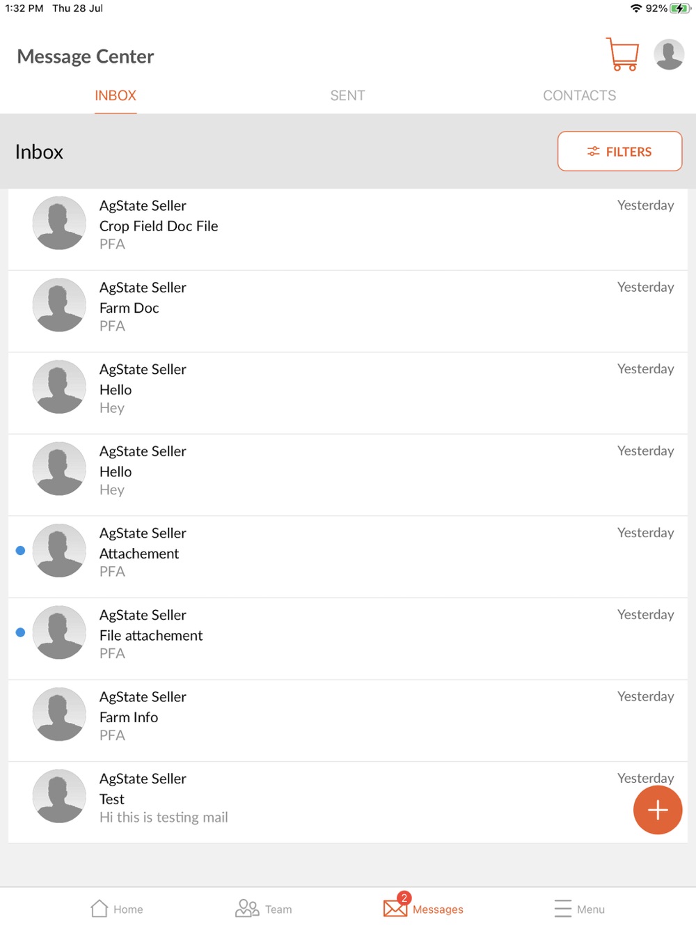 Mobile App provides the key data insights from the AgState branded R7® Field Monitoring Tool and R7® Field Forecasting Tool and connects applications including Account, Weather, Grain (Cash Bids and Futures) and Product Catalog. The app includes messaging, locations, and team roster with quick access to call or text your trusted adviser.