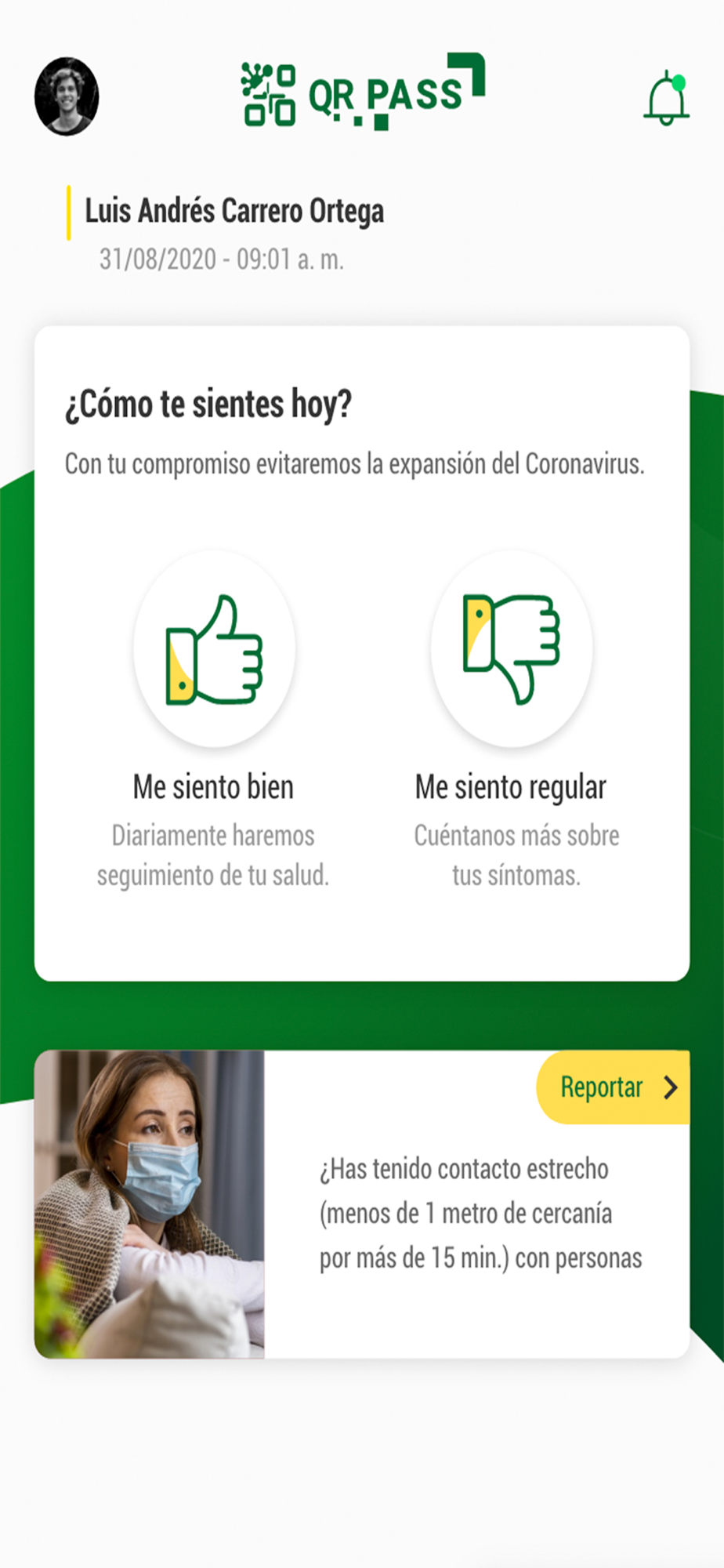 - QR verde: No presenta síntomas y puede seguir realizando sus labores con la prevención adecuada.