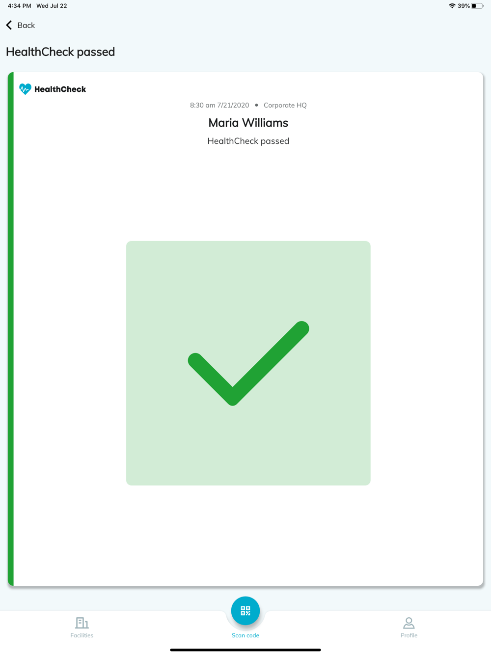 HealthCheck Guard is a free, easy to use app that scans any HealthCheck QR code for employees and guests. The Universal QR code technology allows for contactless entry into any participating HealthCheck organization for streamlined COVID-19 screening and digital contact tracing to meet your local guidelines.