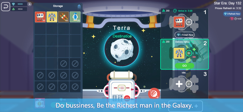 You’re the captain of the spaceship, you will explore and do business in the starry sky.