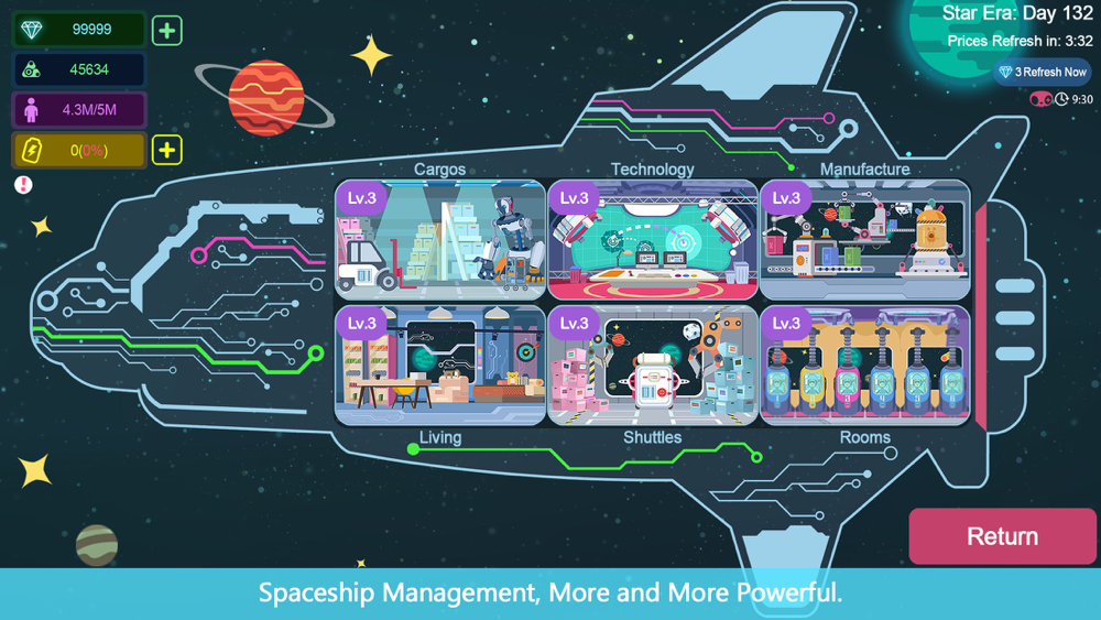 >> explore and trade specialties among dozens of different planets; At the same time, develop planets, collect materials and make products.