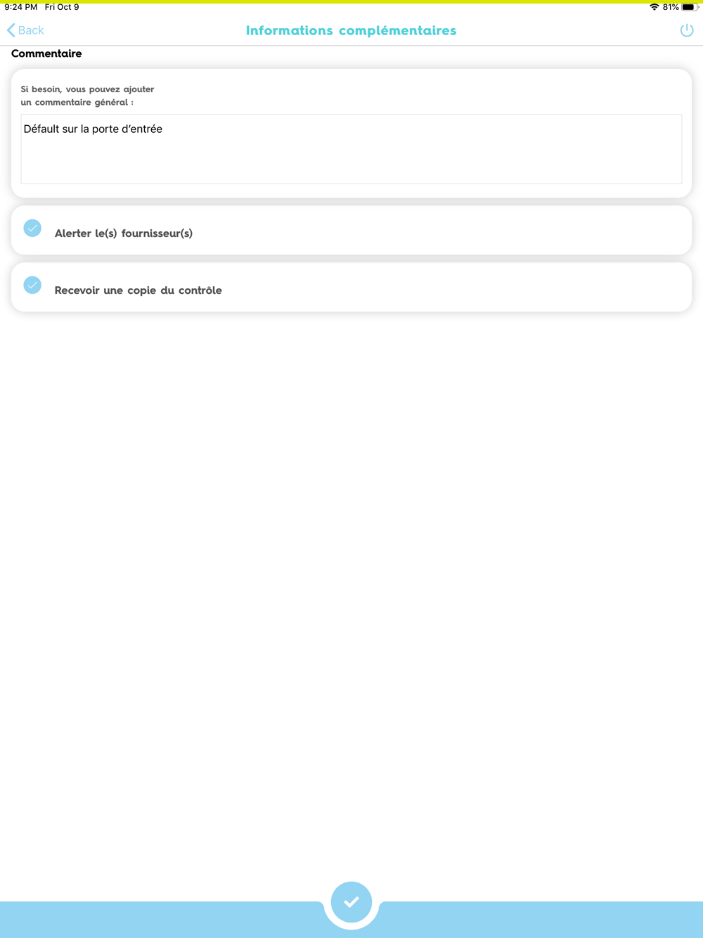 Modifier les items de contrôle en fonction de vos besoins. Personnalisez les objectifs de vos agents, suivez le taux de réalisation en temps réel, informez vos clients et relancer vos prestataires.
