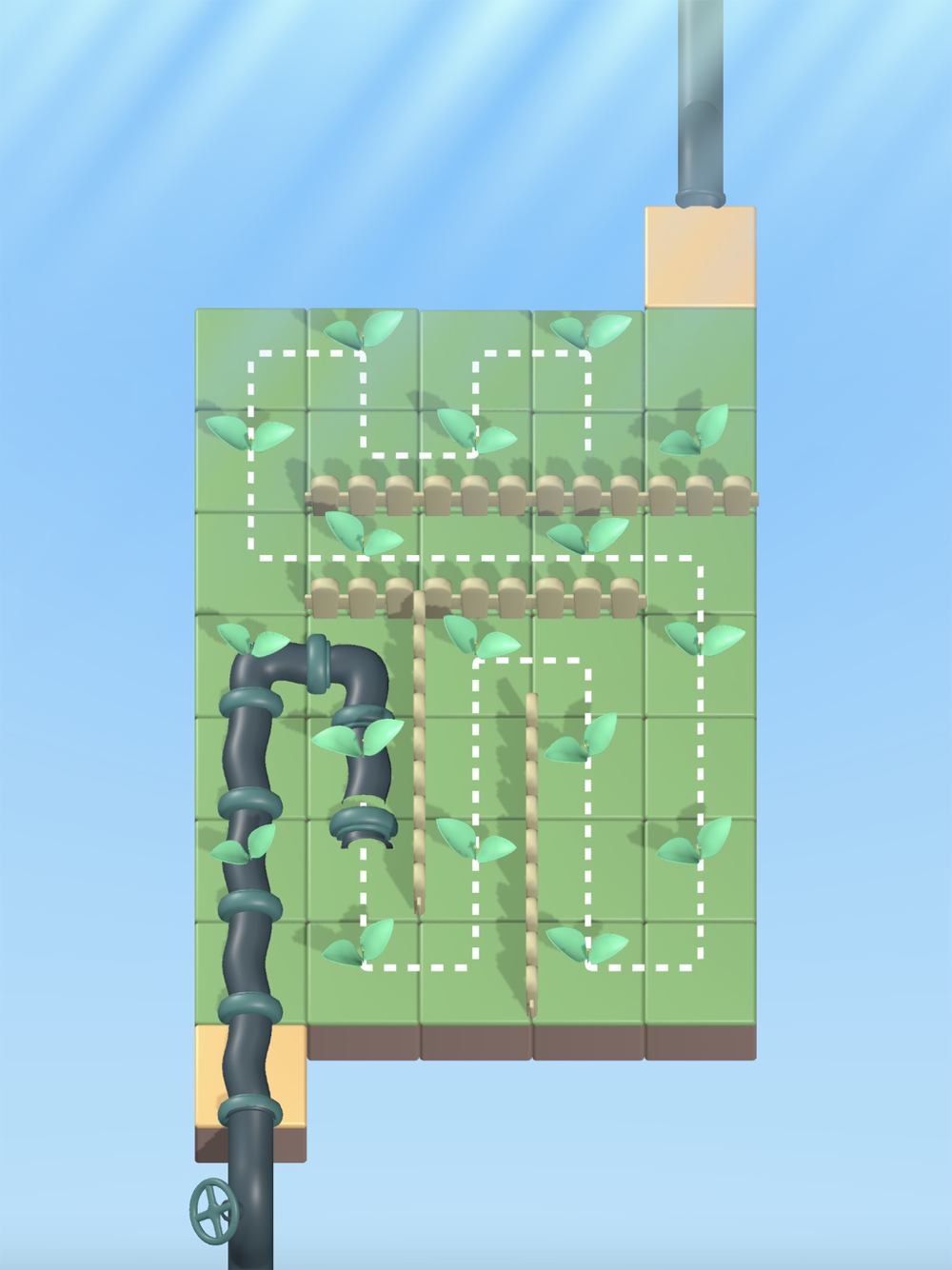 Drag the pipes to give the plants water