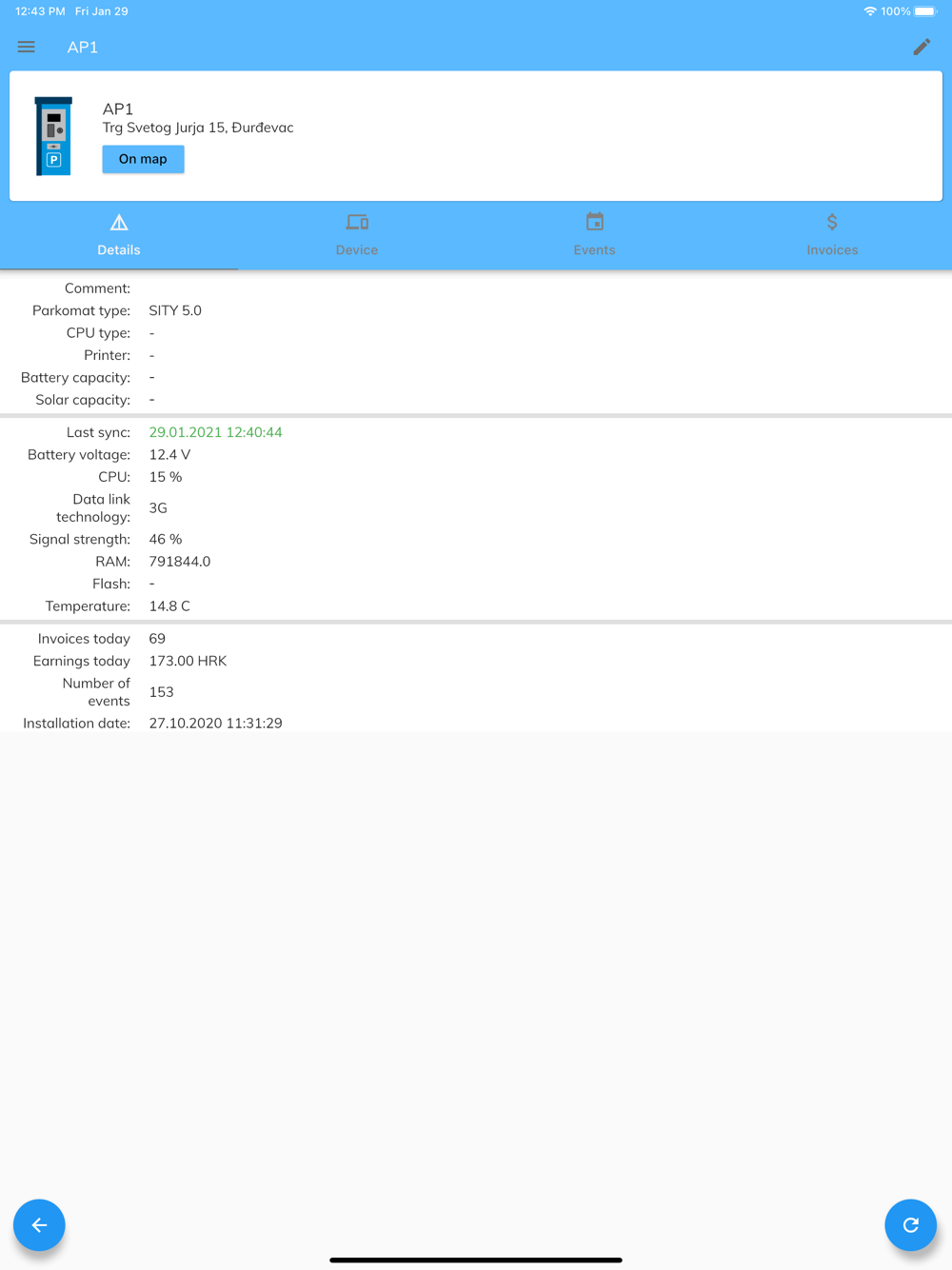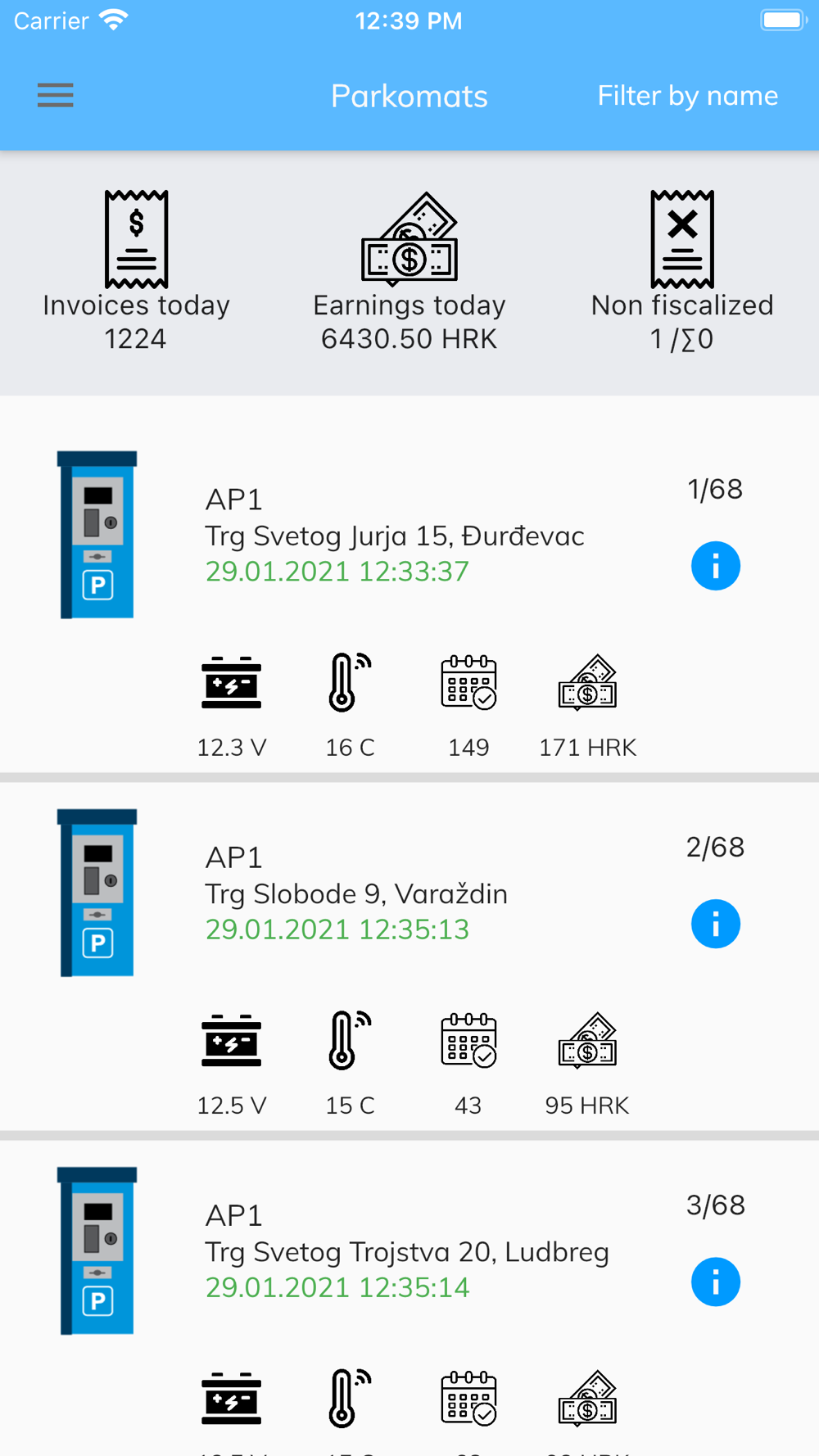Application for parking device concessionaires in Croatia. The application provides information about all parking machines (last ticket, information about the device ...). Data are collected via a TDC-E device developed by Mobilisis d.o.o. TDC-E is a professional industrial IoT Gateway that connects sensors, machines and the IoT platform to collect and process local sensor and process data.
