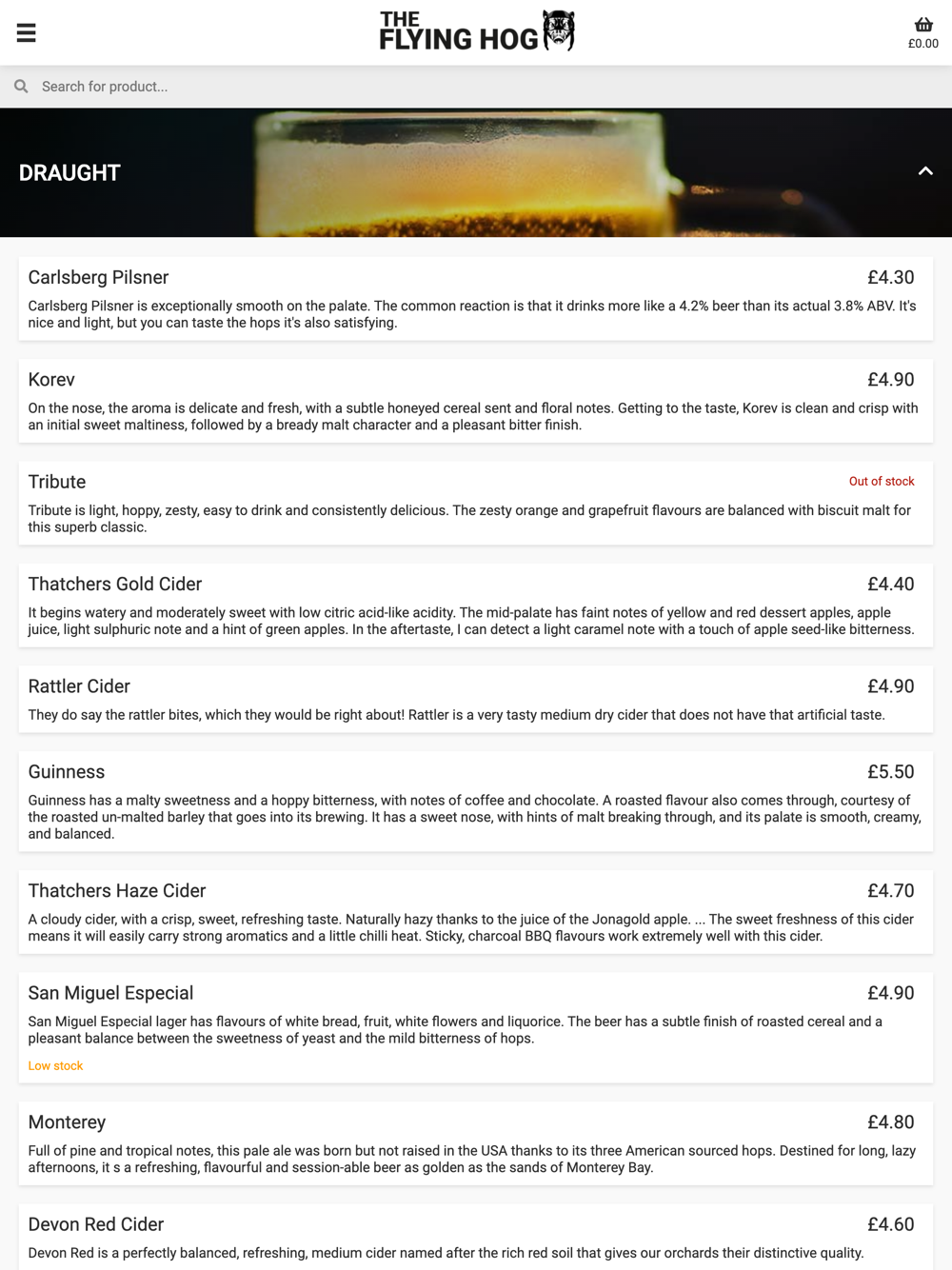The official app of the Flying Hog - Sandown - Isle of Wight. Browse and order your favourites with the tap of a button without ever needing to leave your table! We’ll bring it over to you in no time.