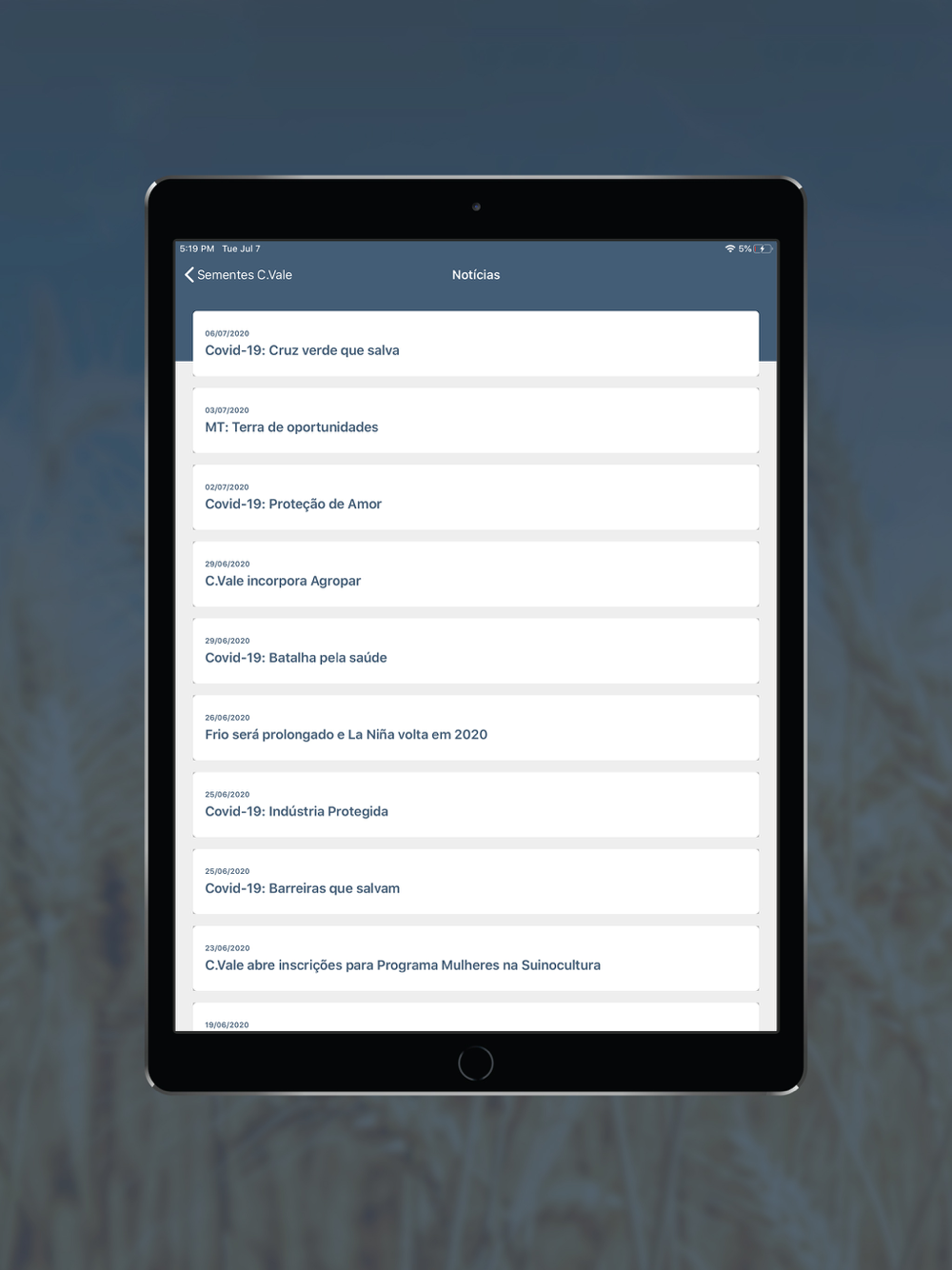Com o APP SEMENTES C.VALE você acessa informações sobre os lotes de sementes produzidos e comercializados pela C.Vale, como Germinação, Peso de Mil Sementes, Pureza Varietal, sugestões de plantabilidade, Tratamento Industrial, detalhes técnicos de cultivares, notícias, informativos e outros.