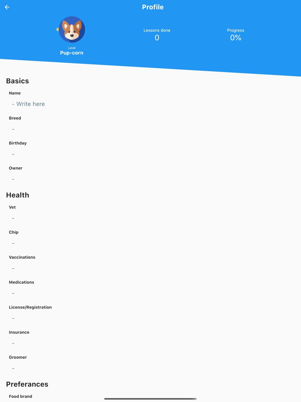 The app starts with some introductory topics and then continues into a mix of daily training topics and tricks you can teach your dog.