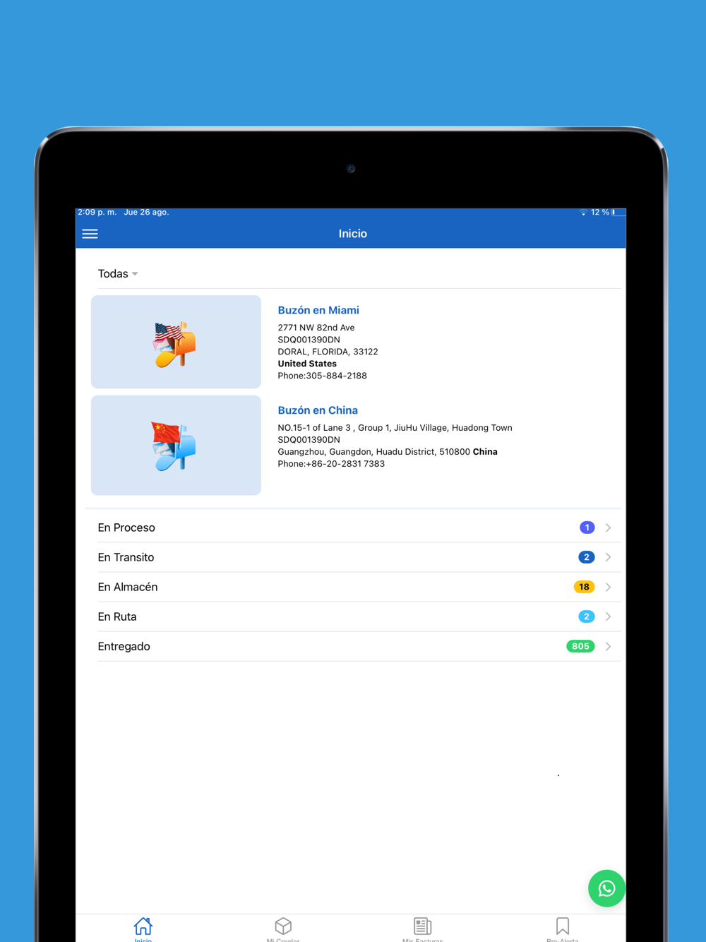 Podrás dar seguimiento a tus paquetes desde que tu proveedor te suministra el número de tracking hasta que lo recibes. Obtener cupones y promociones, realizar tus pagos vía PayPal, y lo más importante recibir atención personalizada vía chat con nuestro equipo de soporte.