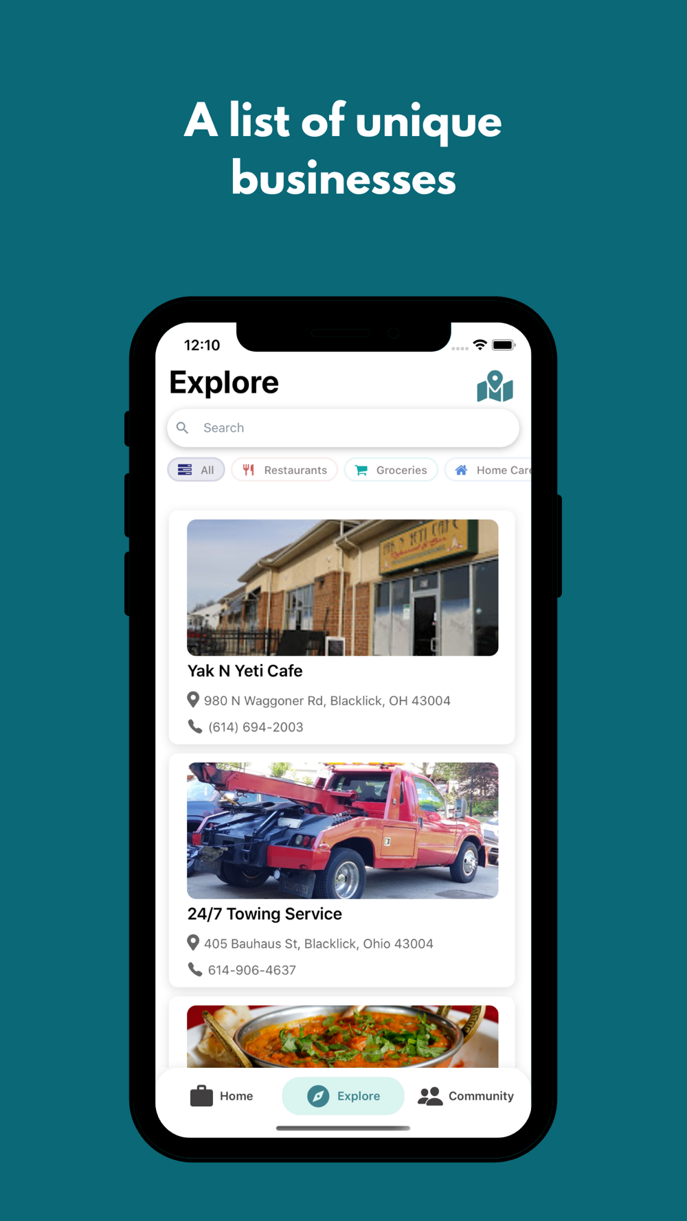 restaurants, grocery stores, home cares, home businesses, gas stations, parlors, services etc.