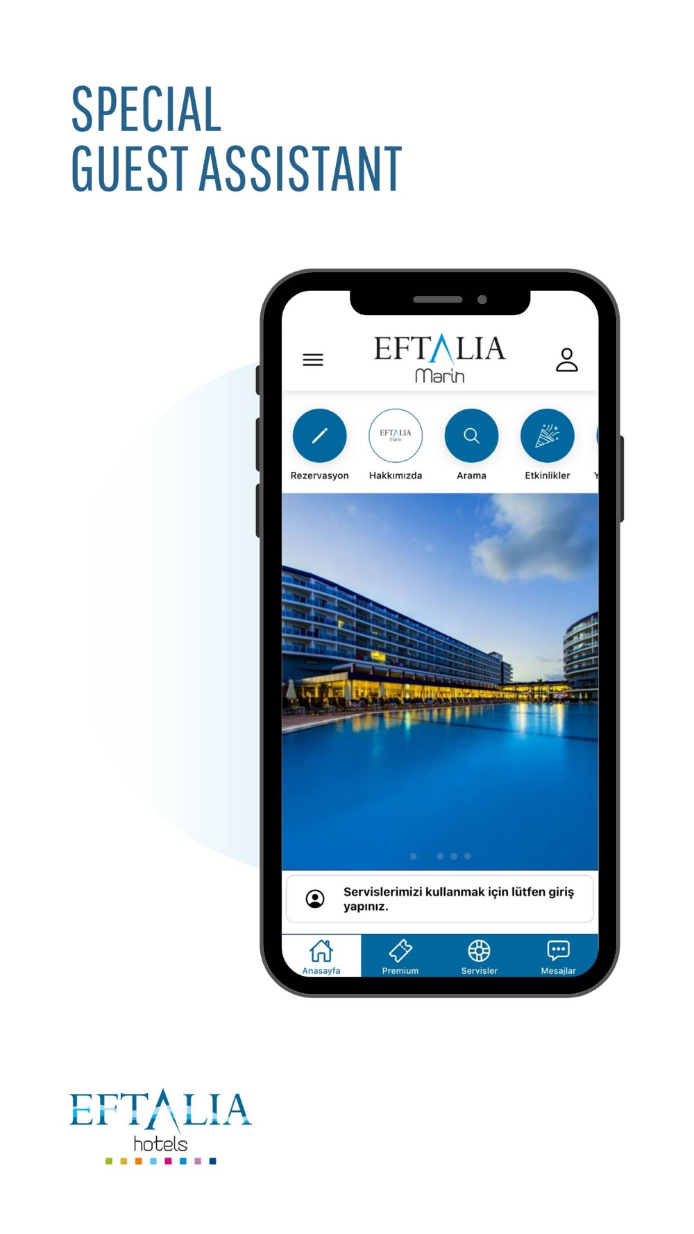 Welcome to Eftalia Hotels; with our hotel application we want to give you the luxury and comfort you need. With this application, all you want is at your disposal, while enjoying great times in our hotel. You will benefit from contactless guest relationship experience by downloading the application from our hotel.