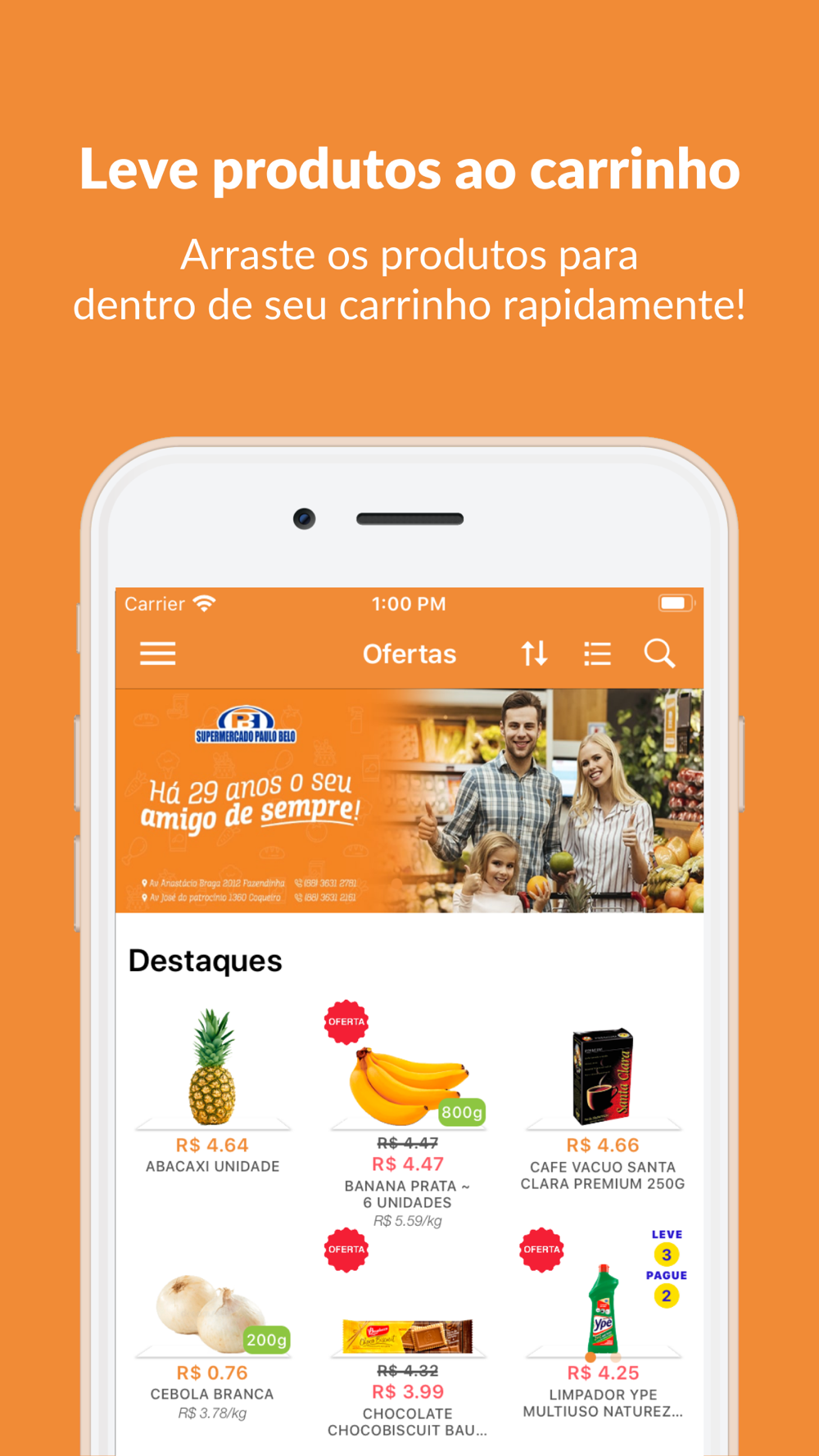 • Adicionar produtos no seu carrinho com um simples tocar e arrastar.