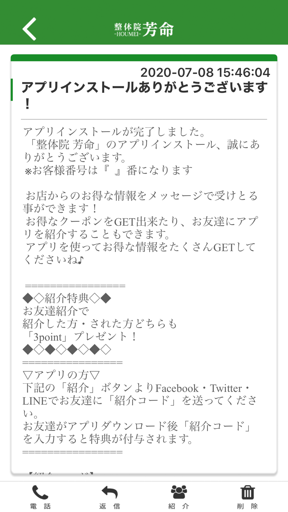 整体院 芳命のアプリをSNSを通じてお友達に紹介する事ができます。