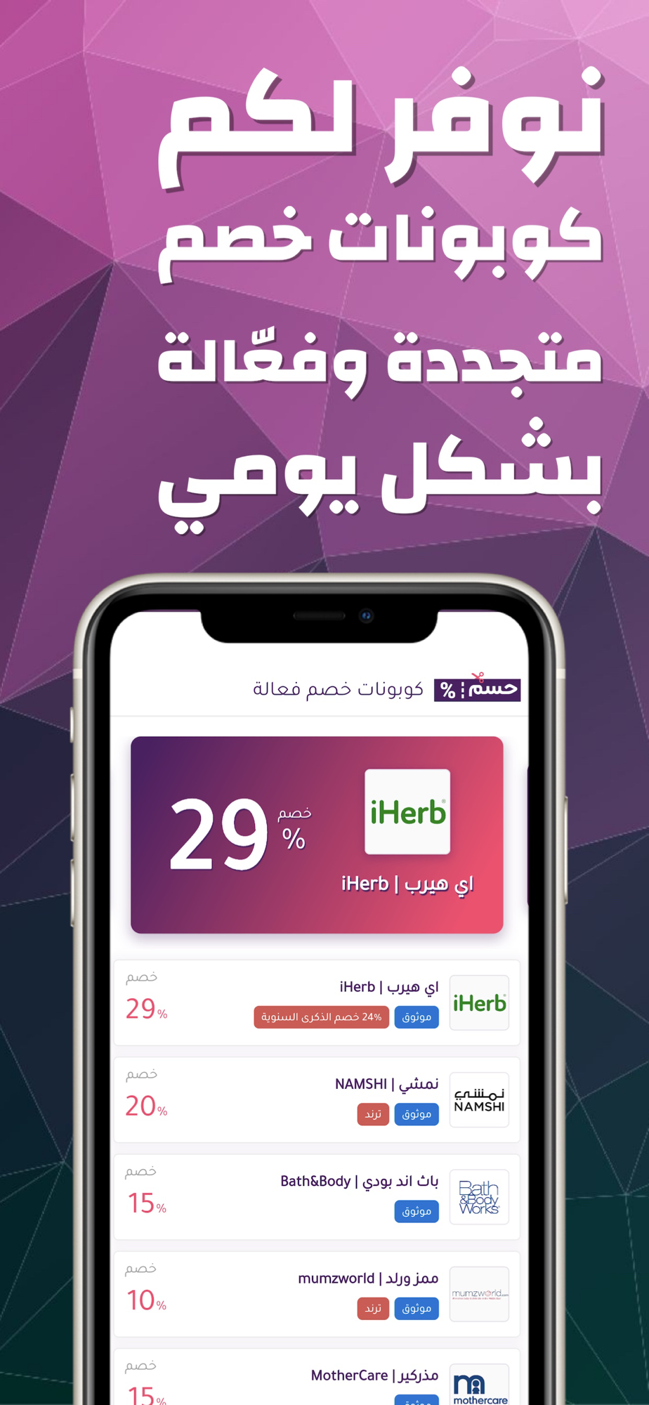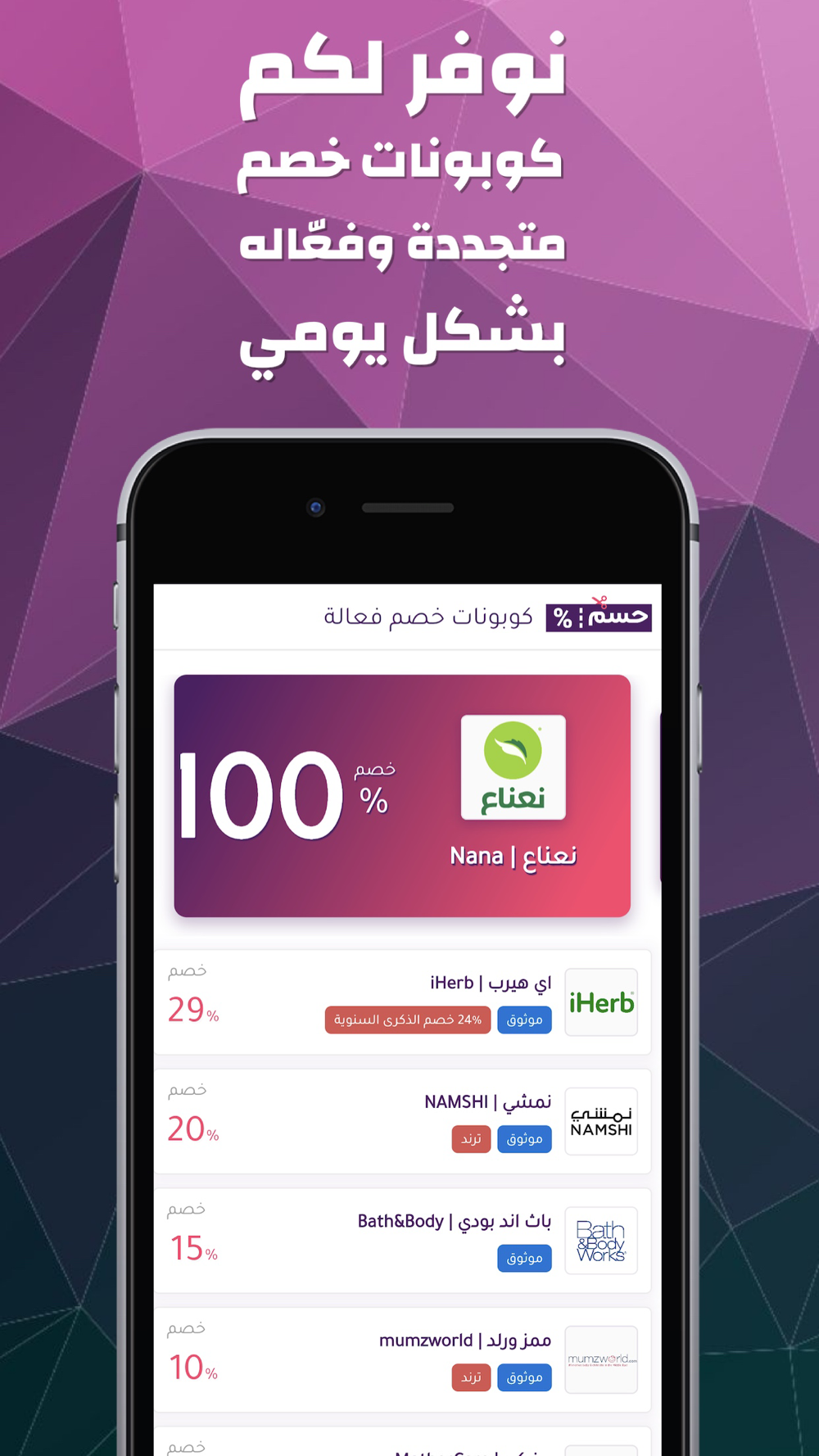 بقدر سعادتك في شراء ماترغب ستكون سعيد بتوفير جزء من المبلغ كذلك ! تطبيق حسم يجمع لك أفضل الكوبونات وعروض الخصم ، ليمكنك من شراء ما تعشقه وتحتاجه من أفضل المتاجر ومنصات التسوق على الإنترنت