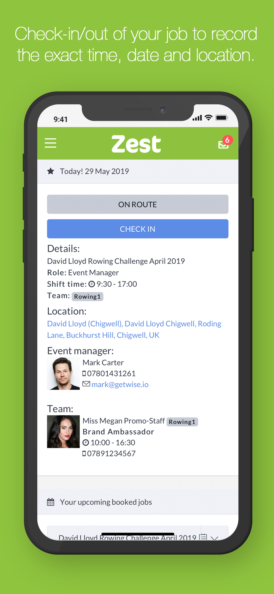* Check in & out of shifts directly within the app
