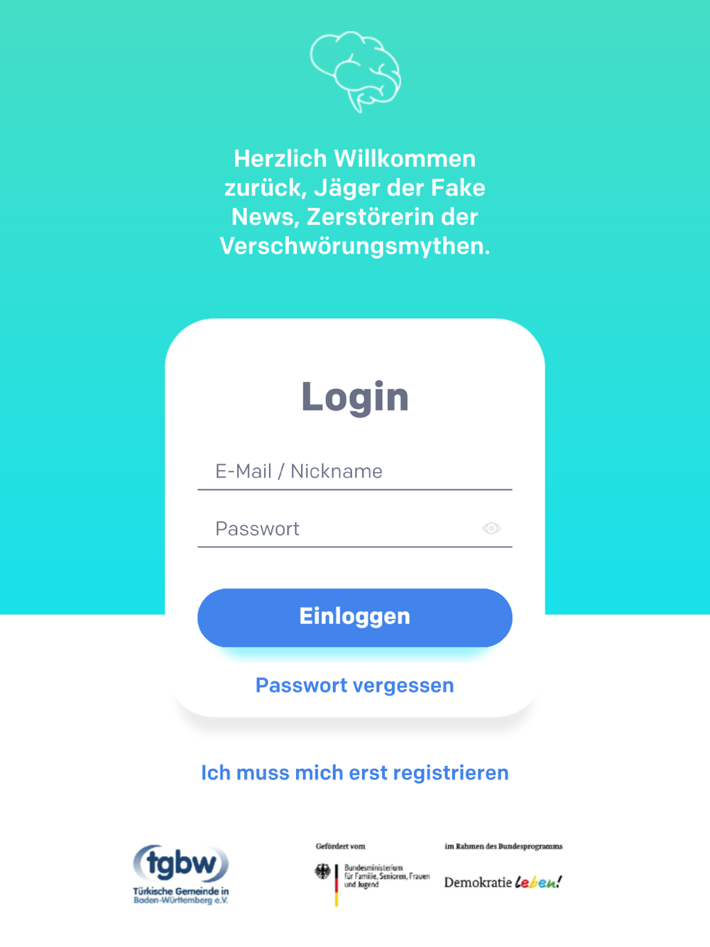 „Brainspiracy“ ermöglicht eine eigene Auseinandersetzung mit dem Thema Verschwörungsmythen und entstand in Rahmen des Projekts „Einmal Brainwash und zurück“ der Türkischen Gemeinde in Baden-Württemberg e.V. (tgbw). Das Projekt wird durch das Bundesprogramm „Demokratie leben!“ des Bundesministeriums für Familie, Senioren, Frauen und Jugend (BMFSFJ) gefördert. Neben einem interaktiven Fakten-Check gibt es unter anderem die Möglichkeit, sich durch Kurzvideos zu Verschwörungsmythen und angrenzenden Themen zu informieren.