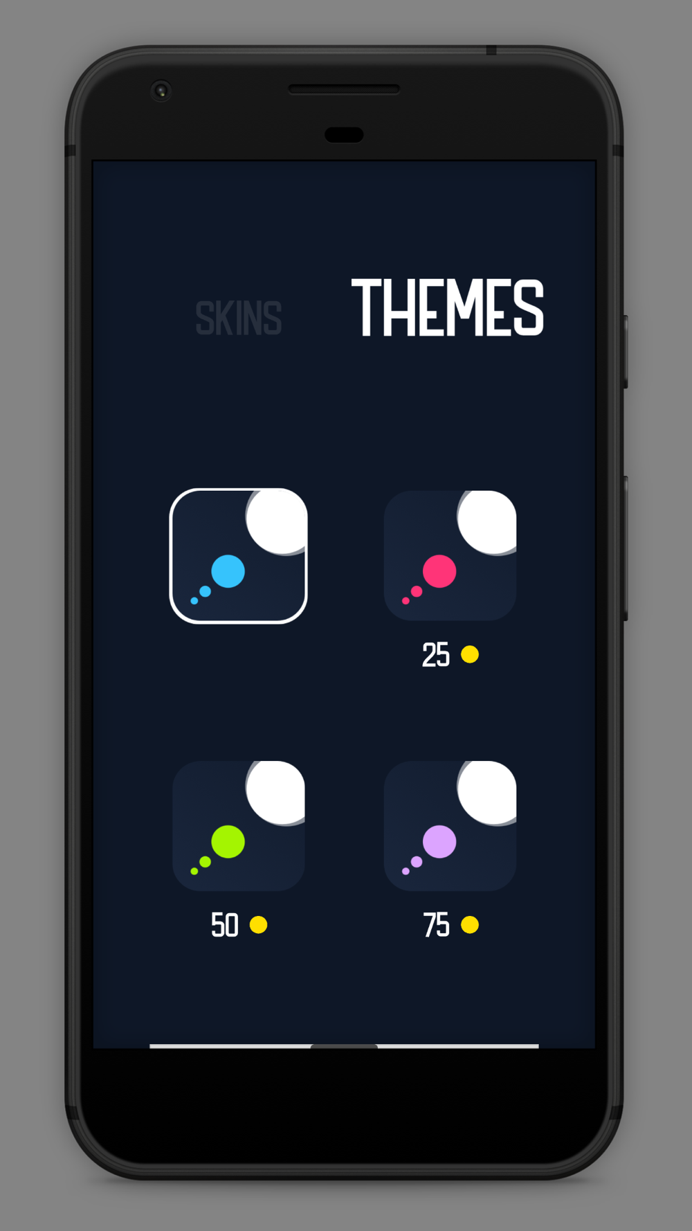Circle Dash is a challenging yet addictive game where you have to tap when the colored circle reaches the center of the gray point. Time each tap carefully and avoid colliding into the walls! Currency spawns rarely, but it's vital for purchasing new skins and themes. It looks easy but it becomes more challenging with every point collected. See how long you can survive!