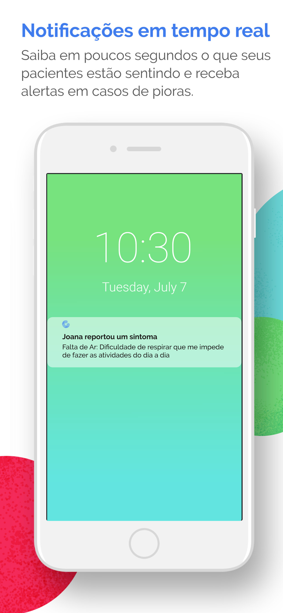 Receba notificações em tempo real sobre os sintomas que o paciente registra no aplicativo.