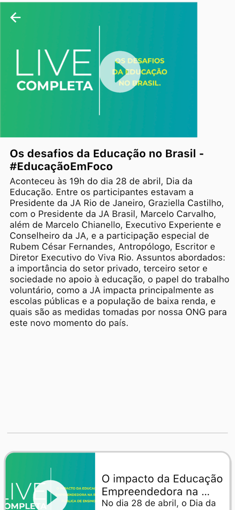 A plataforma JA Live Streaming tem com finalidade facilitar o acesso dos participantes a palestras, seminários e workshops promovidos pela empresa.