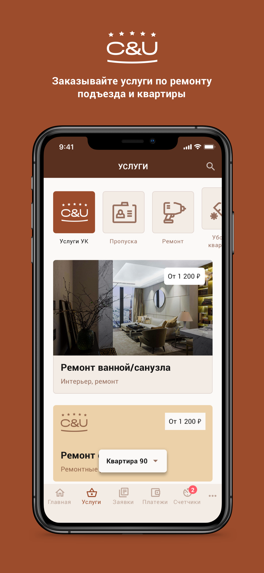 - быстро заказывать услуги, вызывать мастера или связываться с диспетчером;