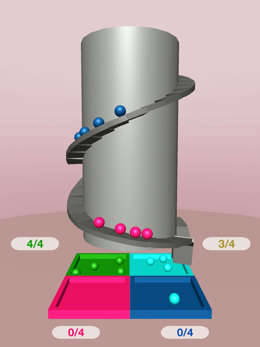 Rotate the cylinder in order to place the balls in the corresponding boxes in the bottom of the screen.