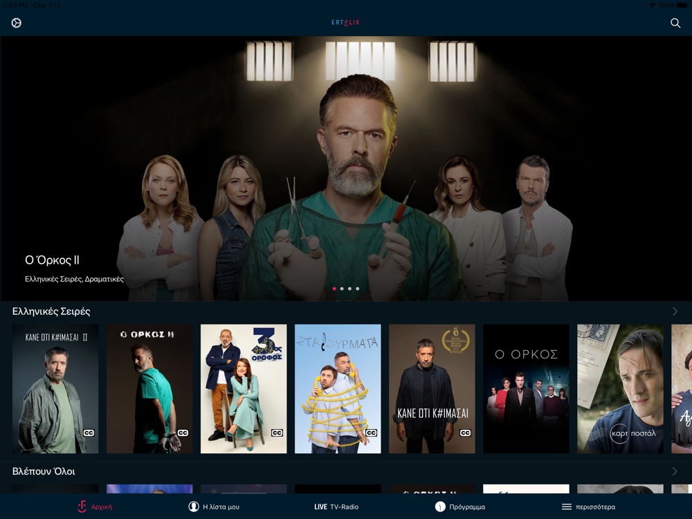 Εδώ θα βρεις το πιο πλούσιο περιεχόμενο: ταινίες, σειρές, ντοκιμαντέρ, παιδικά, μοναδικά αφιερώματα αρχείου, αλλά και 24ωρη ενημέρωση.
