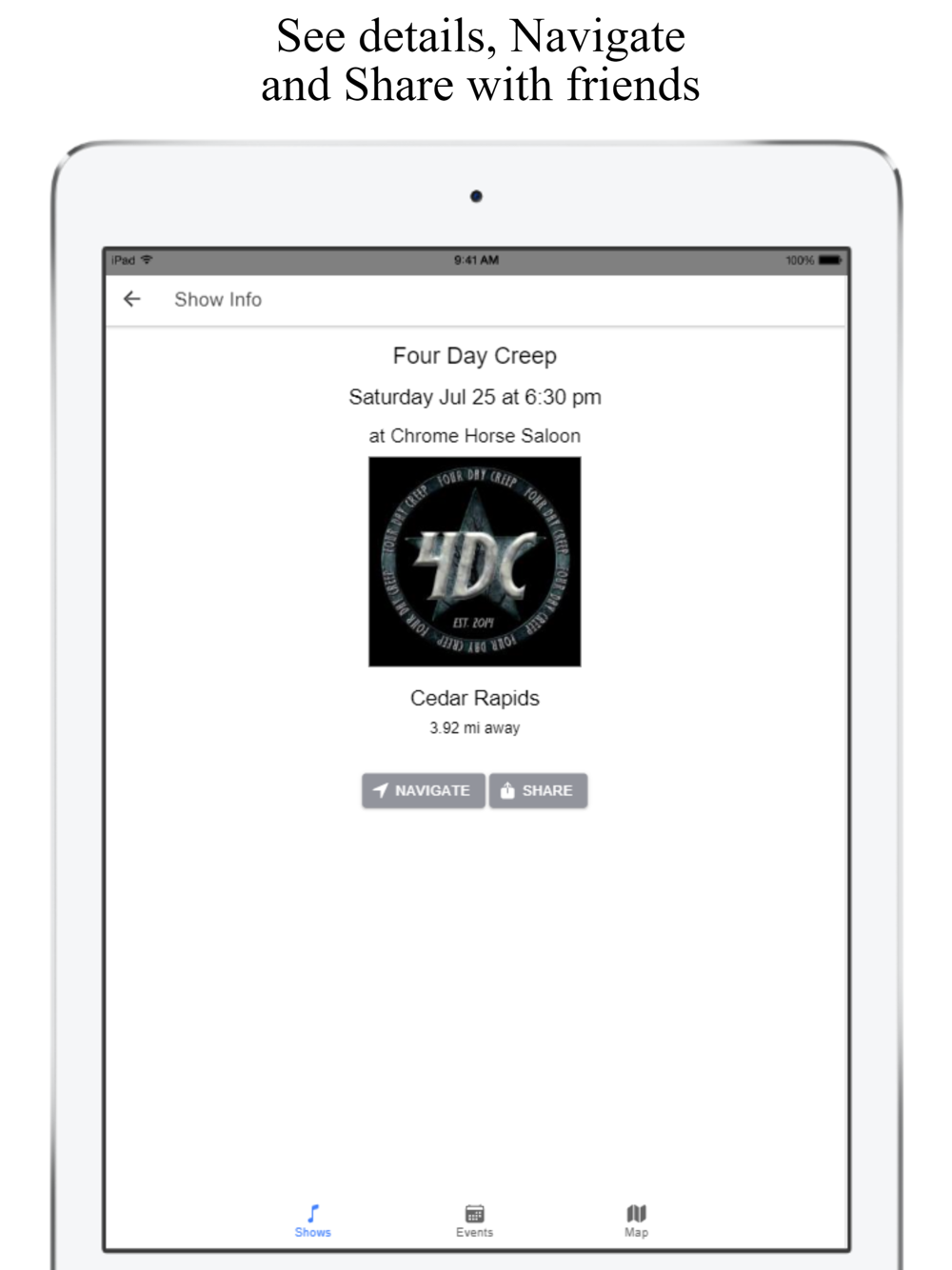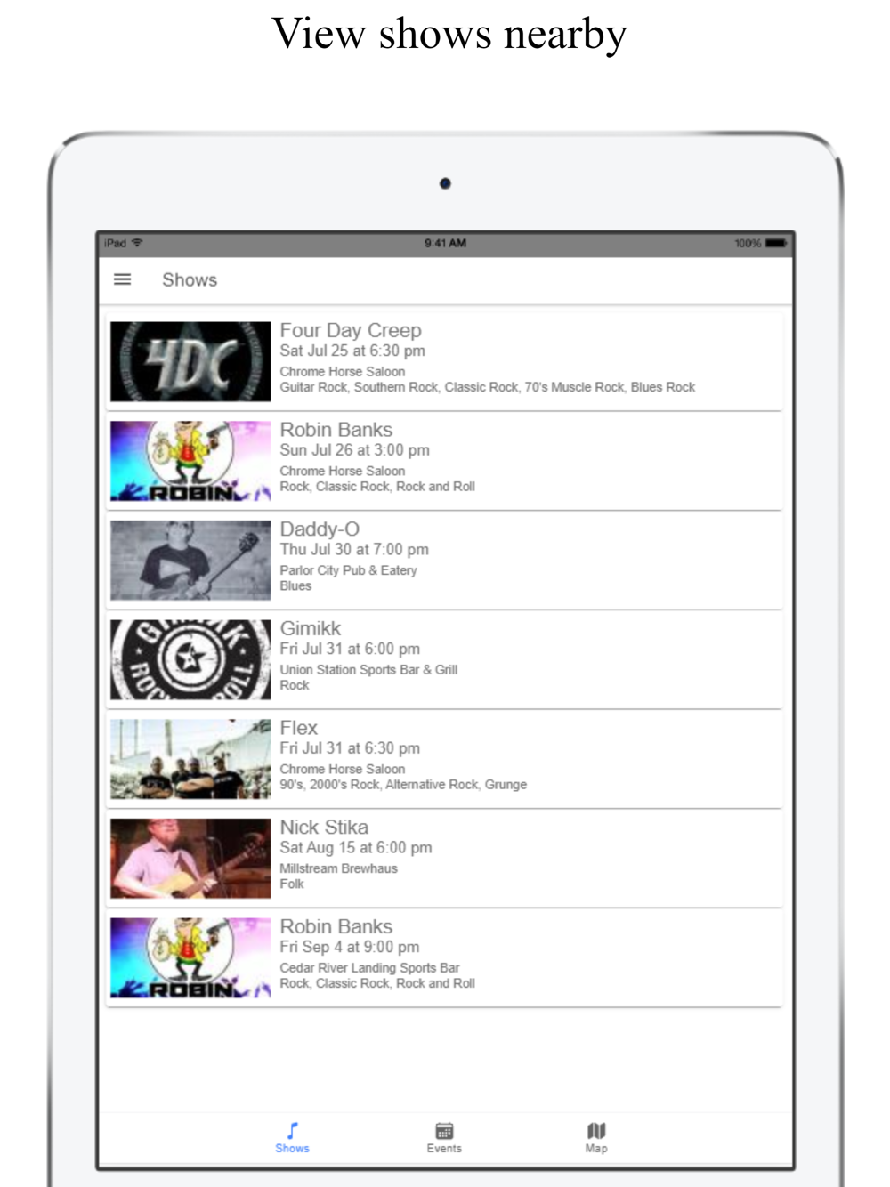 Bands and users can submit a show anytime and we'll add it to the mobile app.