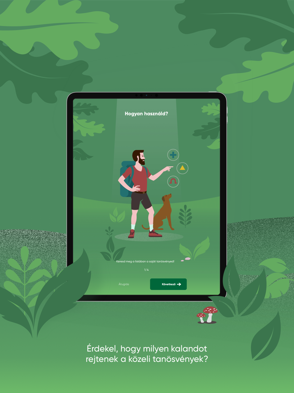 Az alkalmazásban szereplő tanösvények bejárása során a természeti kincsek mellett kultikus épületekkel, régi mesterségekkel is megismerkedhetsz, vagy akár összefuthatsz kedvenc mesehősöddel. Az útvonalak állomásról állomásra kérdésekkel, feladatokkal várják, hogy felfedezzük őket. A helyes válaszért természetesen nem marad el a jutalom: videók, 3D és kiterjesztett valósággal odavarázsolt állatok, természeti jelenségek teszik még izgalmasabbá túrádat. Minden ösvény meglátogatásával jelvényeket gyűjthetsz az elvégzett feladatokért cserébe.