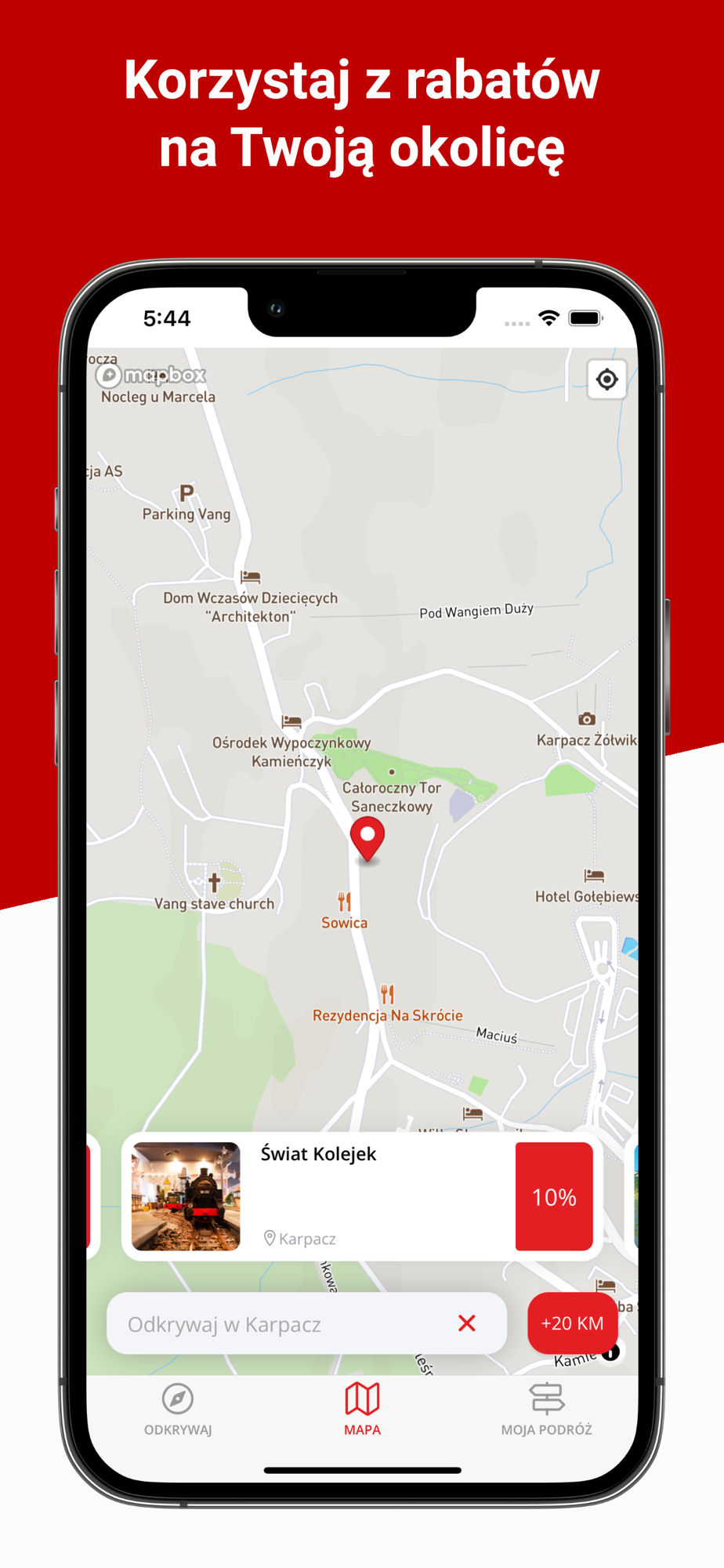 Darmowa aplikacja pomoże Ci zaoszczędzić czas oraz pieniądze oraz zaplanować każdy dzień Twojego urlopu w zależności od Twoich preferencji. Najlepsze atrakcje turystyczne, restauracje, a nawet dojazd do wybranego miejsca, to wszystko znajduje się w ogromnej bazie TanieOdkrywanie.pl. Aplikacja to po prostu „RABAT NA OKOLICĘ”. Pozwól, żeby Twój smartphone stał się wirtualnym przewodnikiem, który zaprowadzi Cię w najciekawsze miejsca znacznie taniej niż ceny regularne. W celu najwygodniejszego korzystania z oprogramowania wskazana jest włączona funkcja lokalizacji, dzięki czemu TanieOdkrywanie.pl zaprowadzi Cię najwygodniejszą drogą do celu.