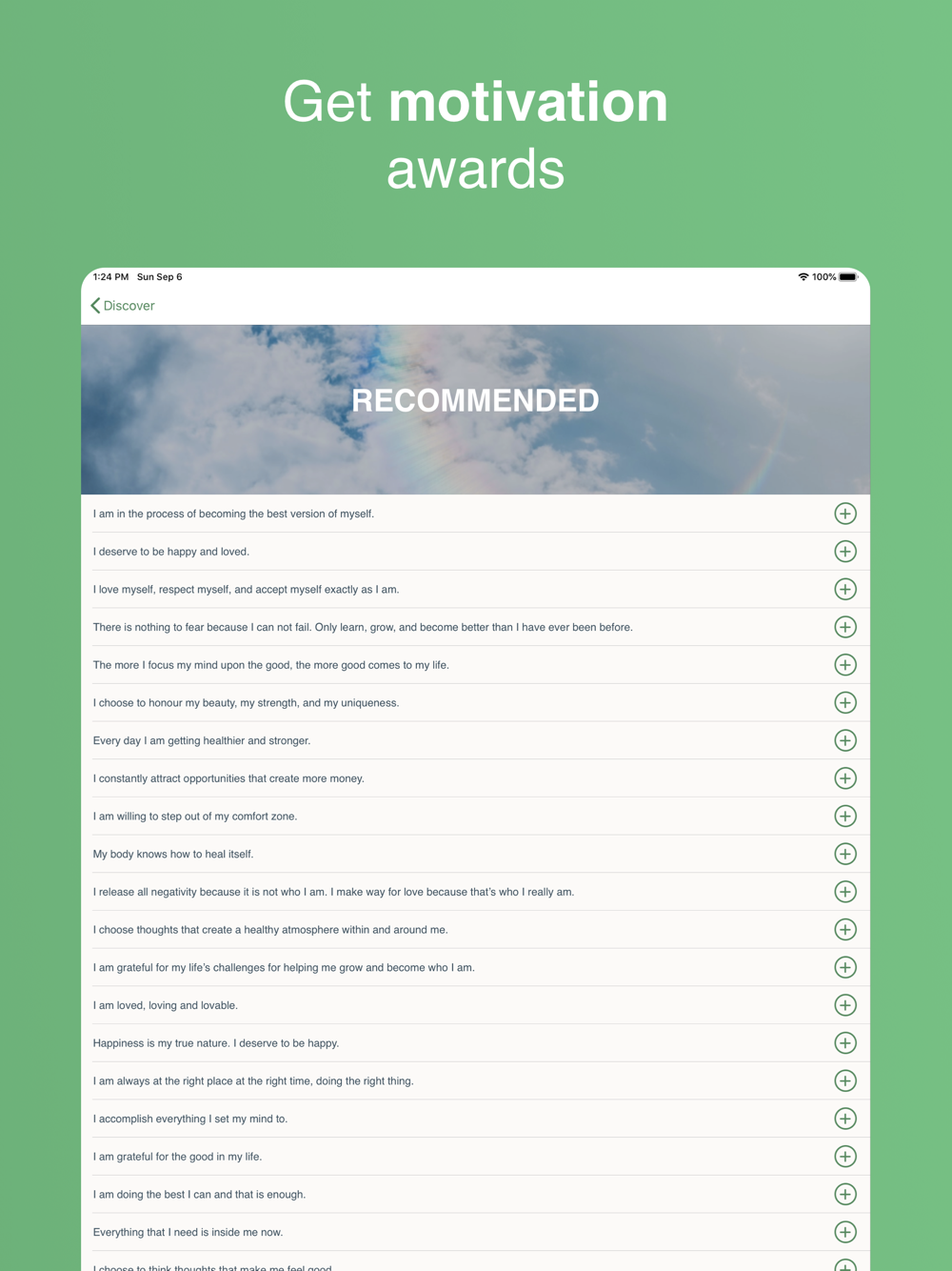The MindGarden team has curated more than 800 affirmations in 39 categories. Add them effortlessly to your collections and start meditating.