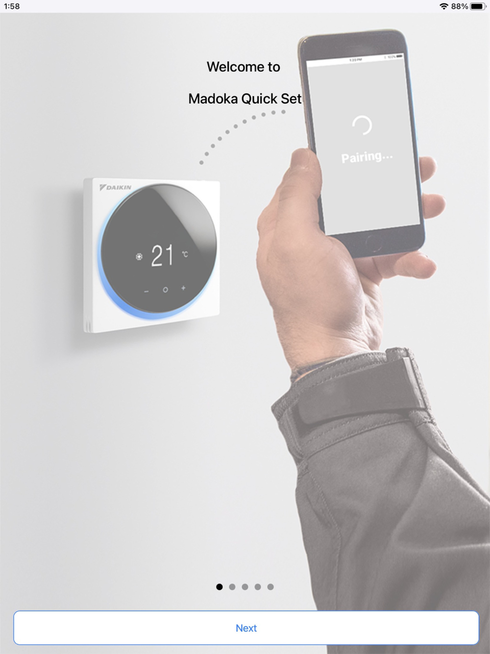 The Madoka Quick Set app allows simple and quick setup through BLE for the Daikin Madoka Remote Controller. Provides leveled user authority for system administrators and installers. Allows indoor unit and remote controller settings to be configured remotely then saved to a file; then uploaded to each Madoka Remote Controller via BLE once on site.