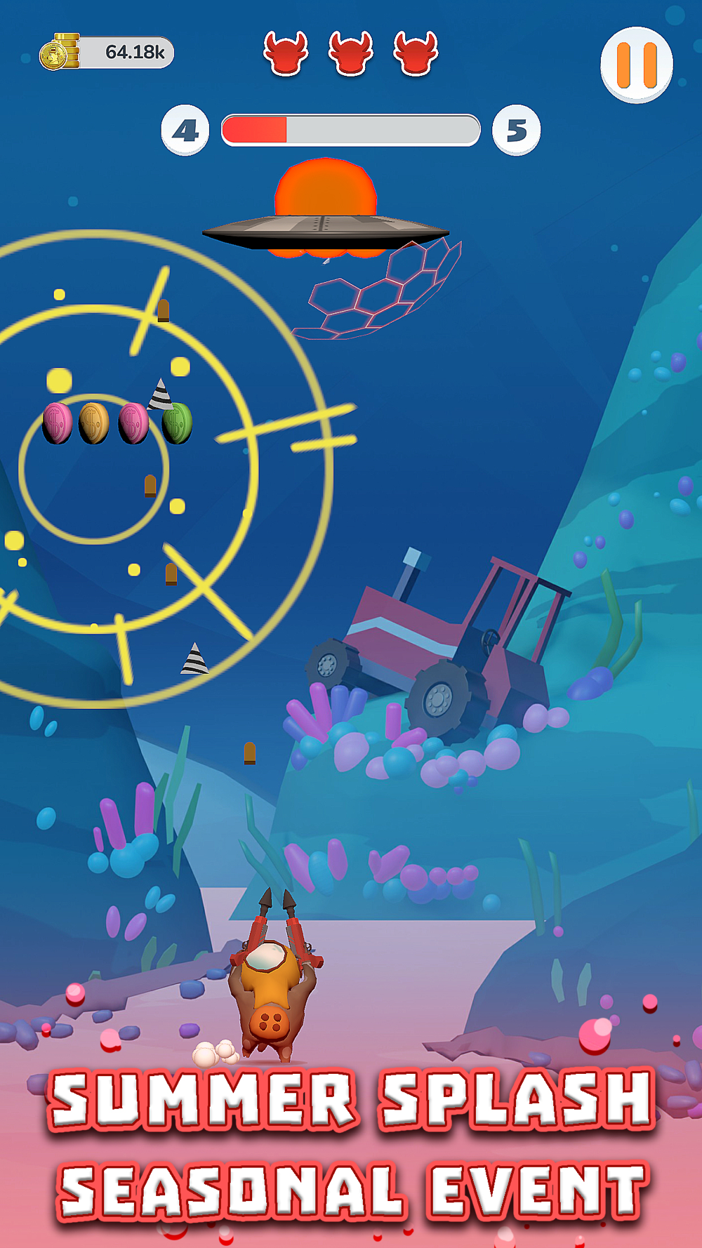Equipe your cow amongst a series of fun and exciting skins and get ready to shoot aliens! Play in a hyper immersive environment with high quality sound effects and 3D graphics. Add more fun to the game with additional unlockable features obtainable thanks to your in-game achievements. Give your very best, challenge your friends and stay on top in leaderboards!
