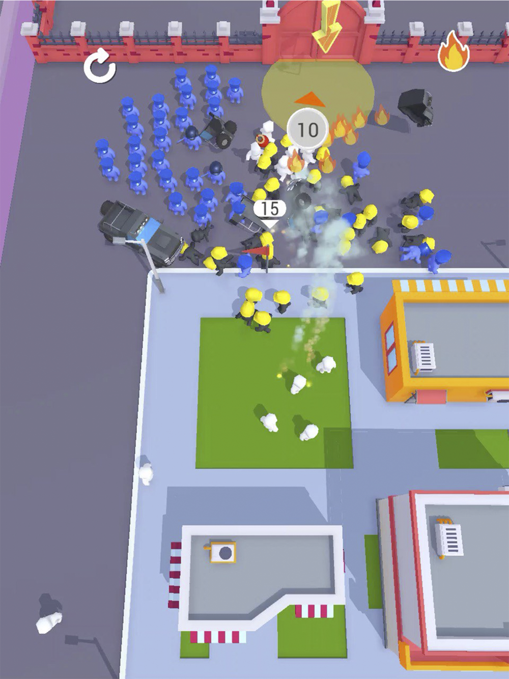 Come out to fight for your rights! Move along the city streets and gather like-minded people. Smash cars and shops to collect more residents of the city. Match parts and bricks to arm your people. Think over tactics to resist the cops without losing the ranks of the rebels. Reach the finish line and become the new law for this city!
