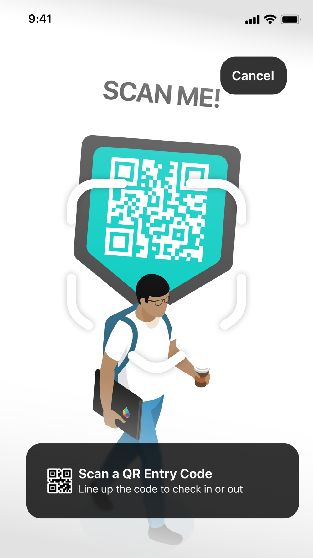 From there, whenever you see an Entry QR Code, pull out your phone and scan it. You will be asked if you want to check-in or out.