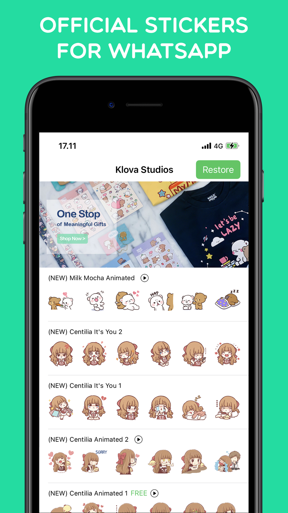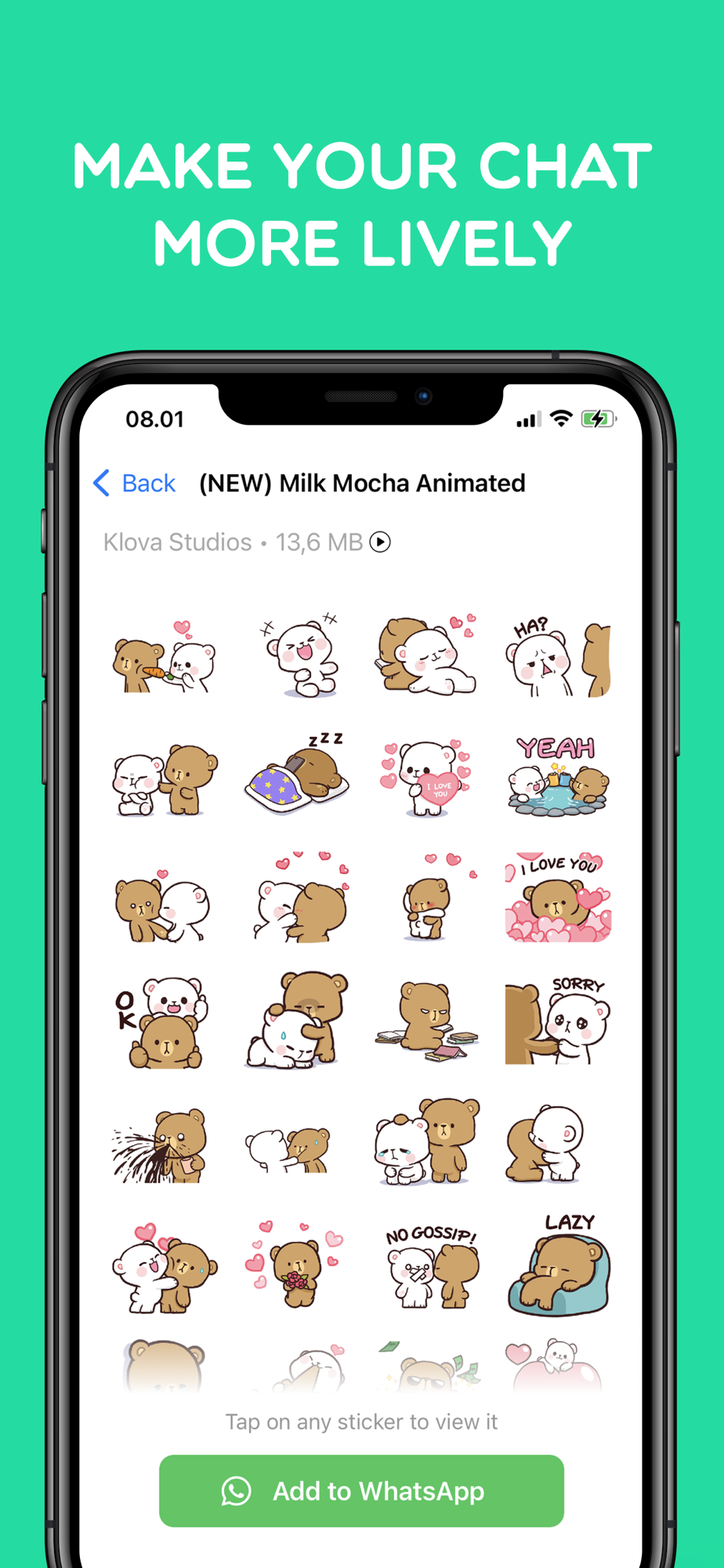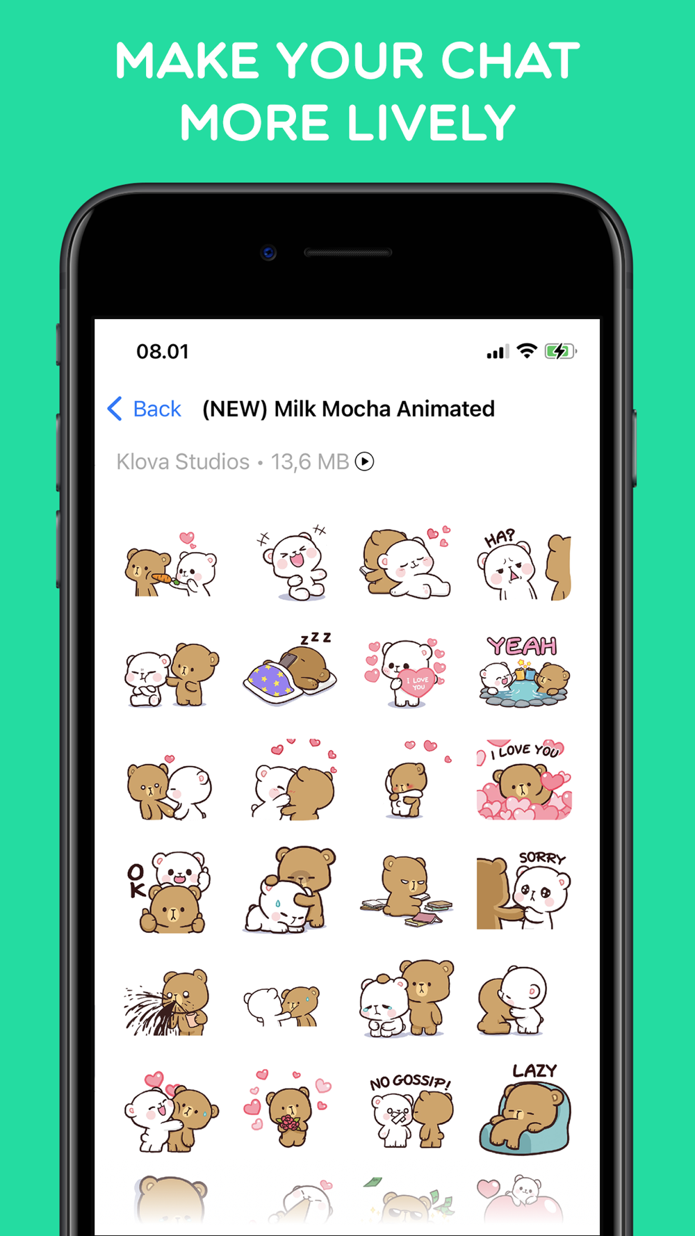 Introducing Klova Studios official application stickers from our cute characters Milk Mocha Bear and Centilia.