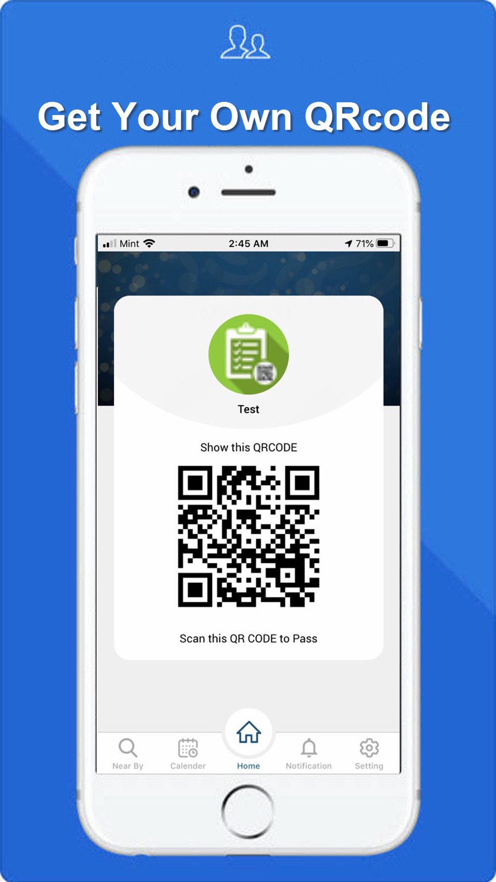 Users can get own QRcode for the coming and going.