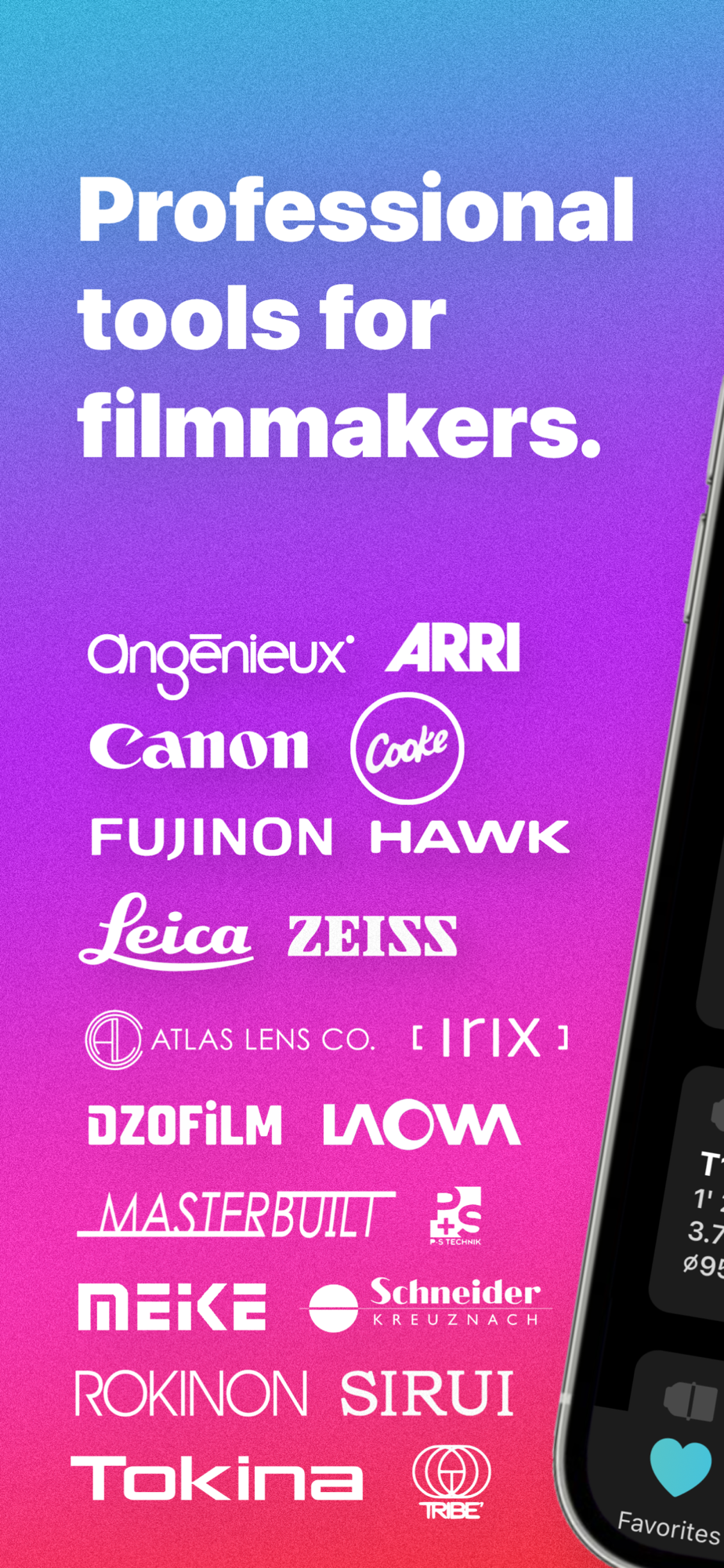 *Every lens in this app has complete specs, with the exception of some Panavision lenses. We’ve chosen to include these incomplete lenses in the app because of Panavision's importance in the industry. Additionally, while the large majority of lenses have exact image circle data, some—especially some vintage lenses—list only generic format coverage (e.g. Super35, Full Frame, etc)