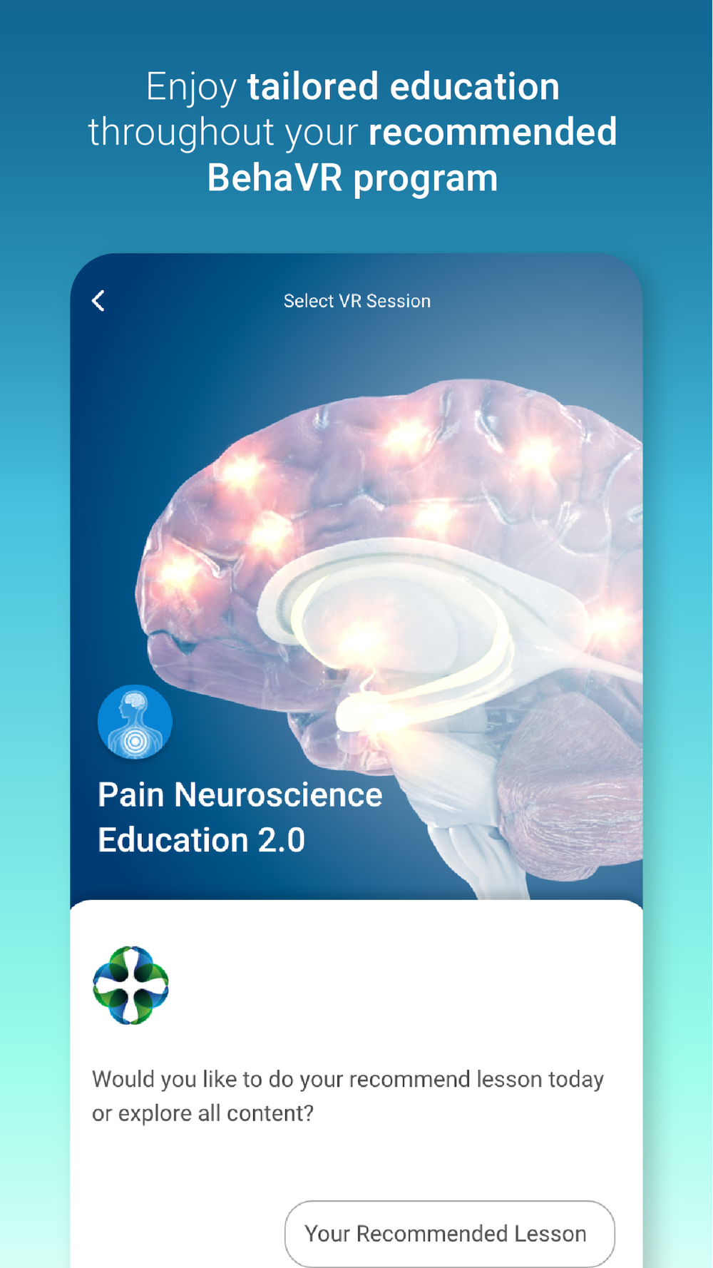Start your recommended BehaVR VR program and launch your daily lesson directly from your mobile device