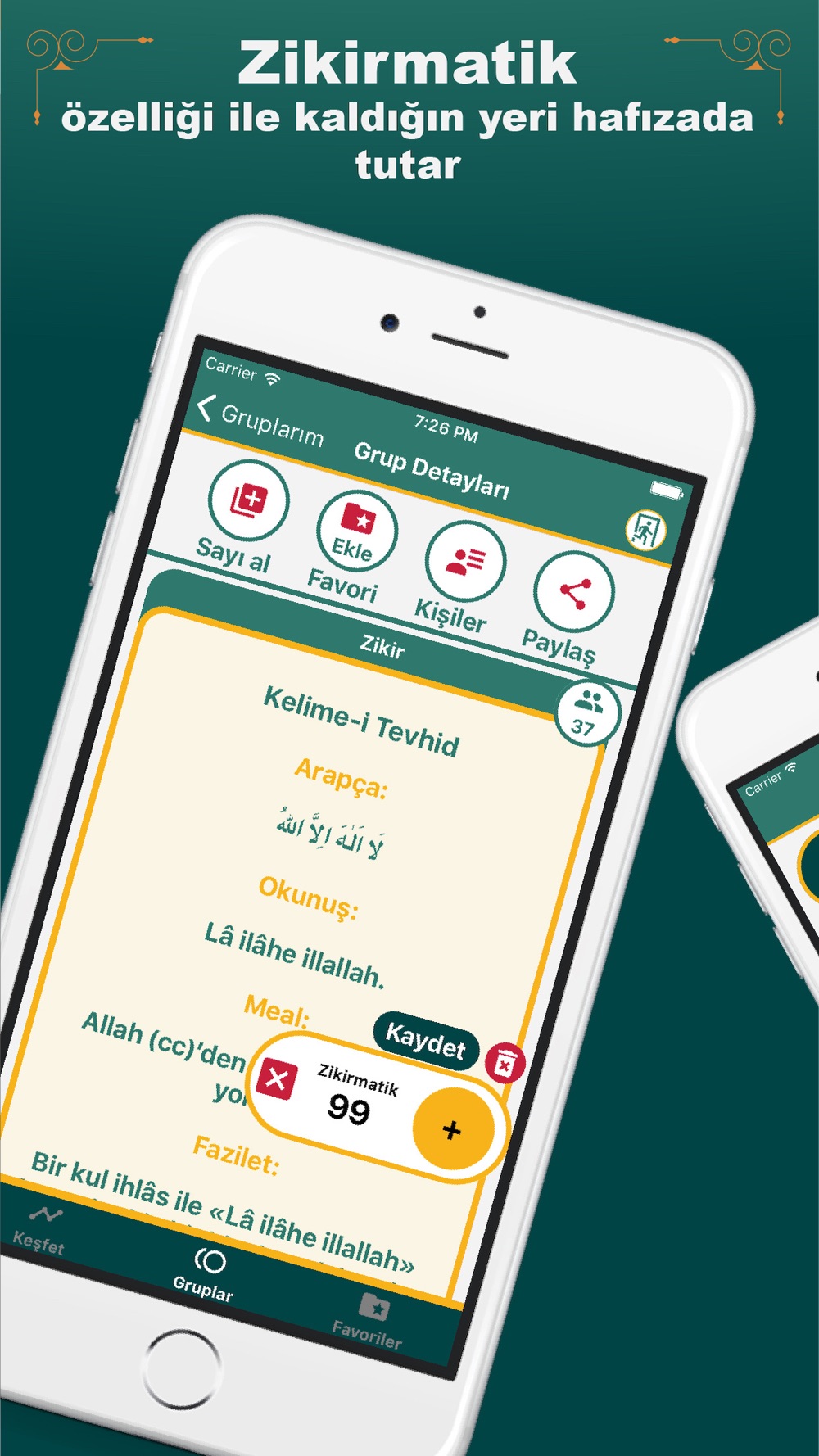 Zikirmatik özelliği ile kaldığınız yeri hafızasında tutar ve sen kaldığın yerden okumaya devam edersin.