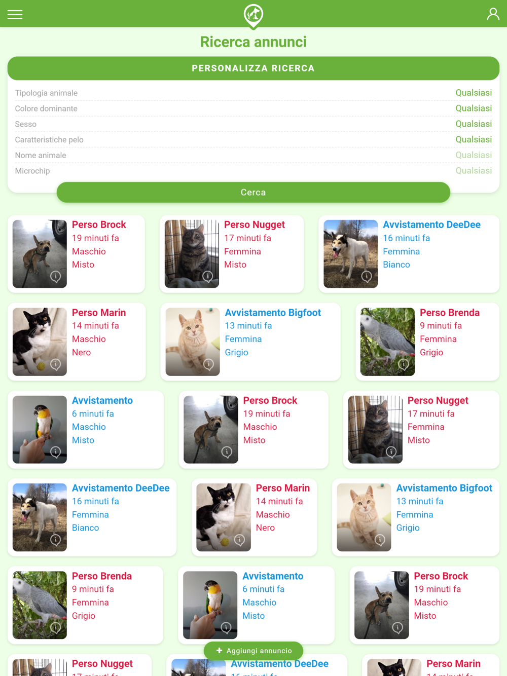 Raccogliamo segnalazioni, aiutiamo gli animali persi e abbandonati a tornare a casa o a trovarne una nuova. Scarica la nostra app per partecipare al nostro progetto, inviare segnalazioni ed aiutare gli animali in difficoltà.
