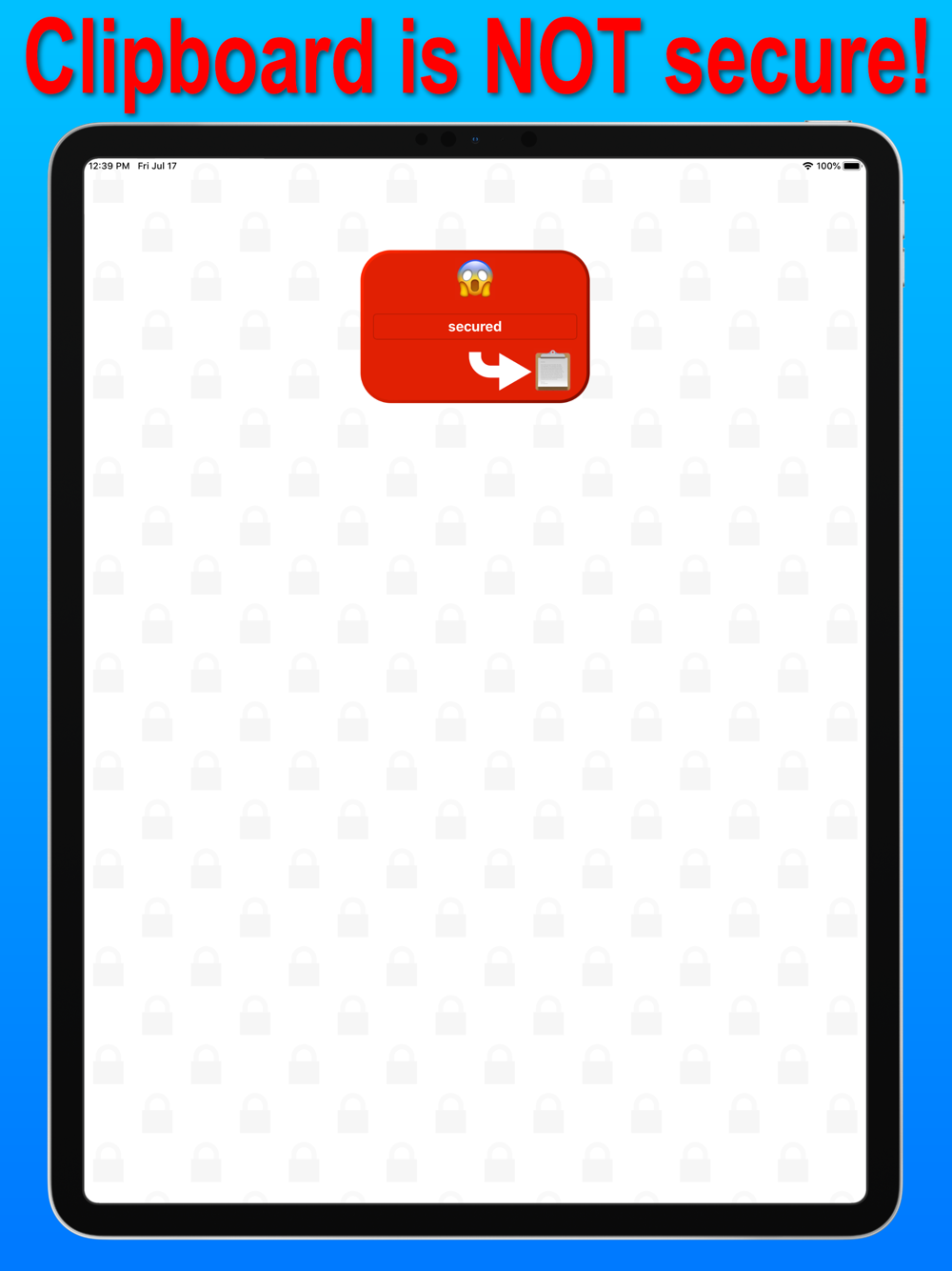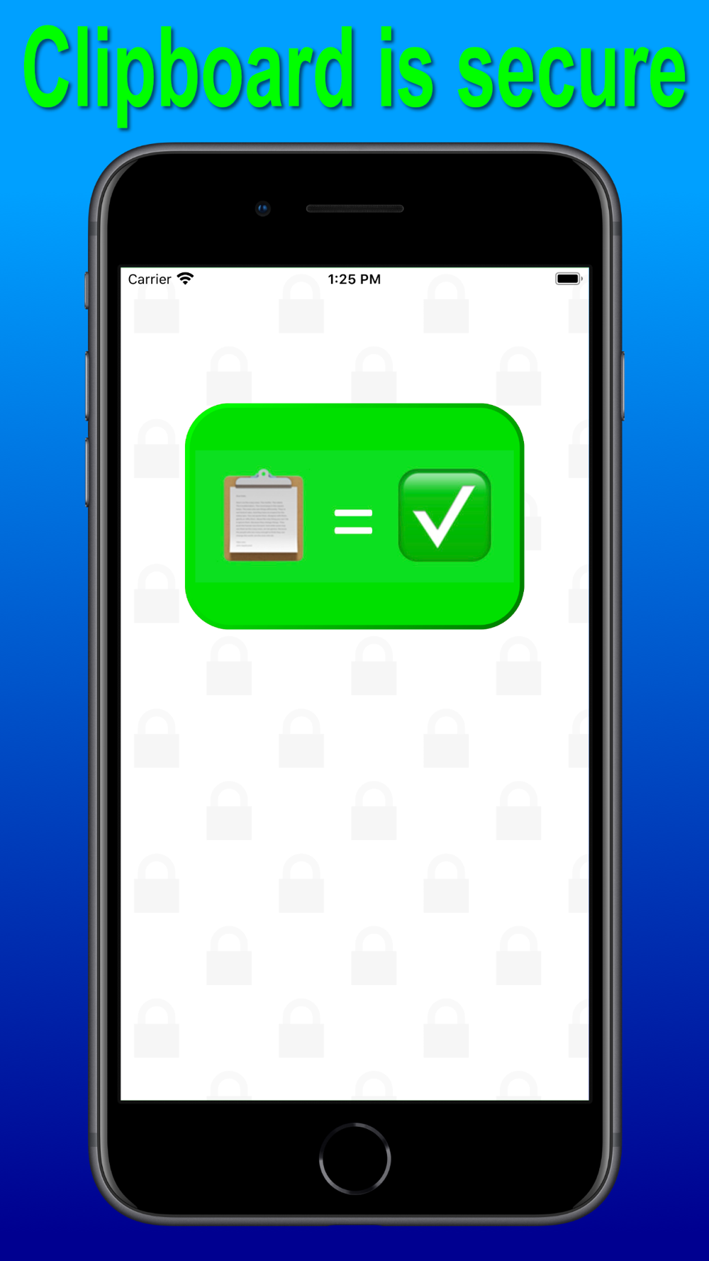 Clipboard Securer's only purpose is to secure the clipboard. It does this by pasting user-specified text into the clipboard. The text can include emojis. The app checks the clipboard every time it comes to the foreground. The app only checks to see if something is in the clipboard and that it is NOT the user-specified text. Other than that, this app does not care what is in the clipboard.