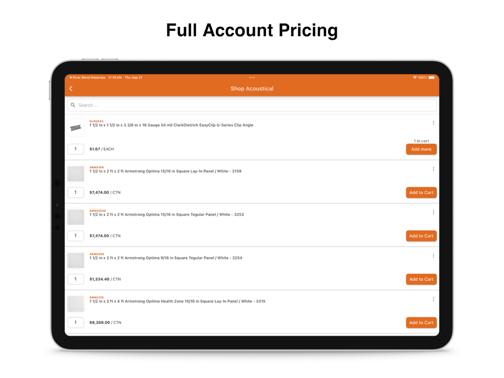 The Rocky Top Materials app features include full access to your online account and account pricing, as well as real time inventory and full order tracking.