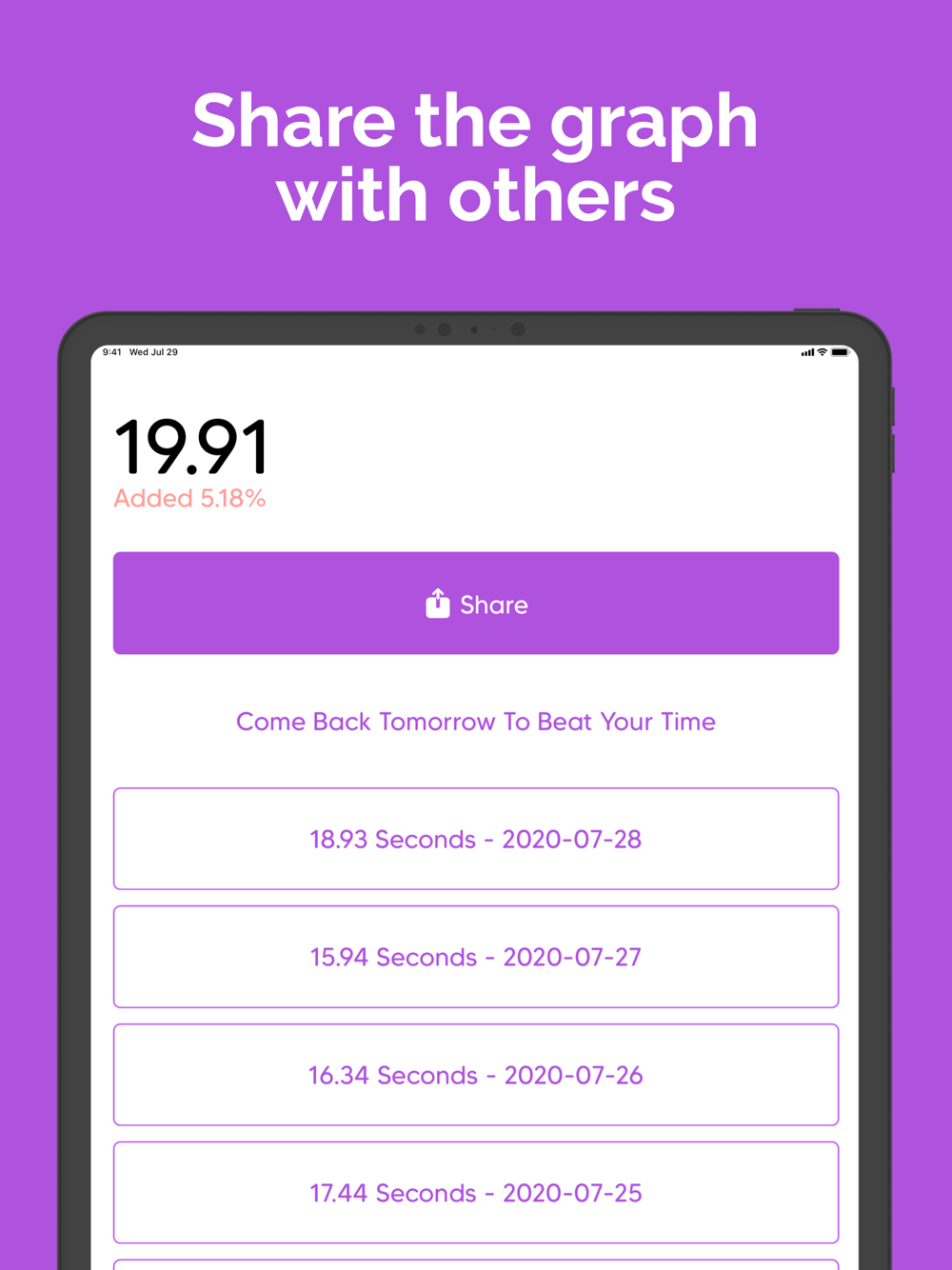 • Users can share their last 7 days of progress as a graph, to inspire others and feel good about oneself
