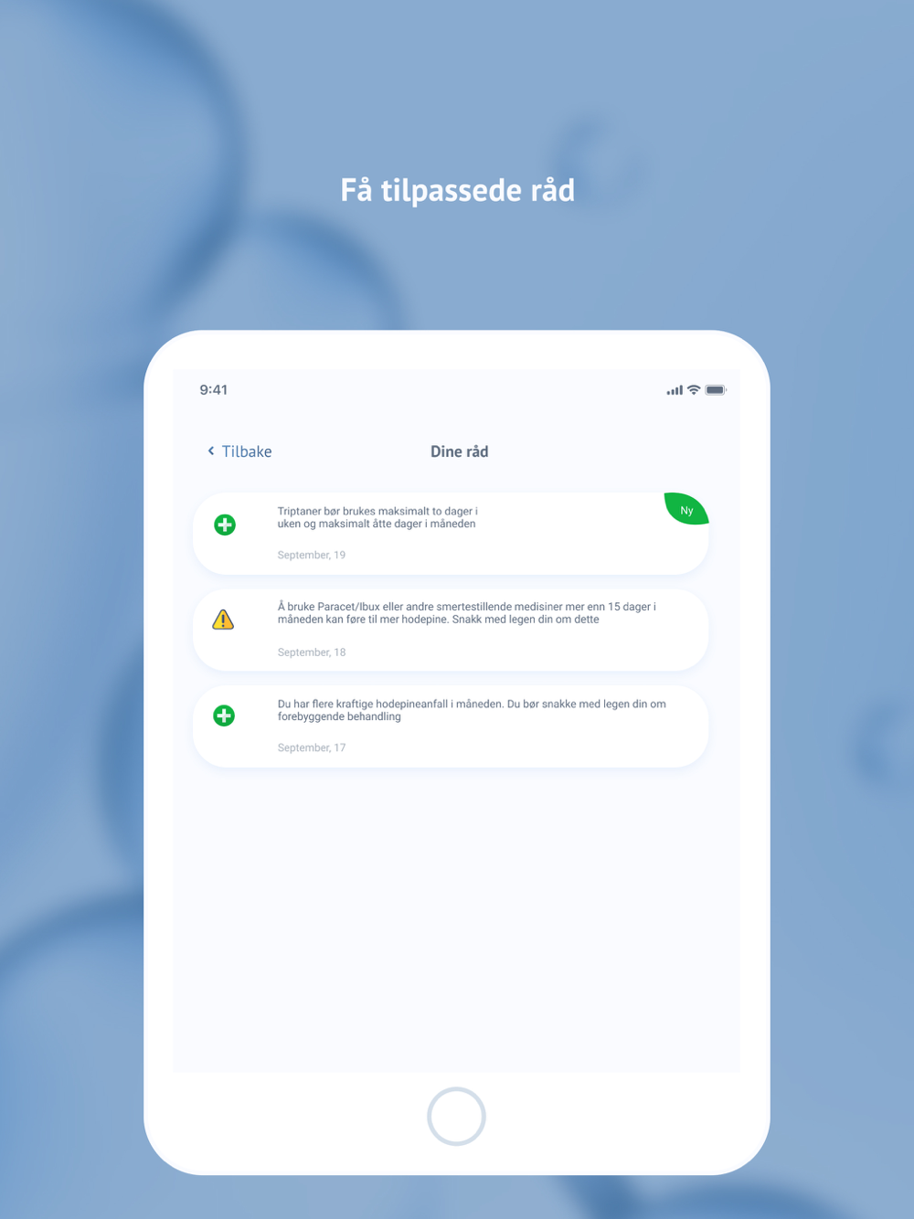 The Headache Calendar gives you an overview of your headache and migraine and how it develops over time.