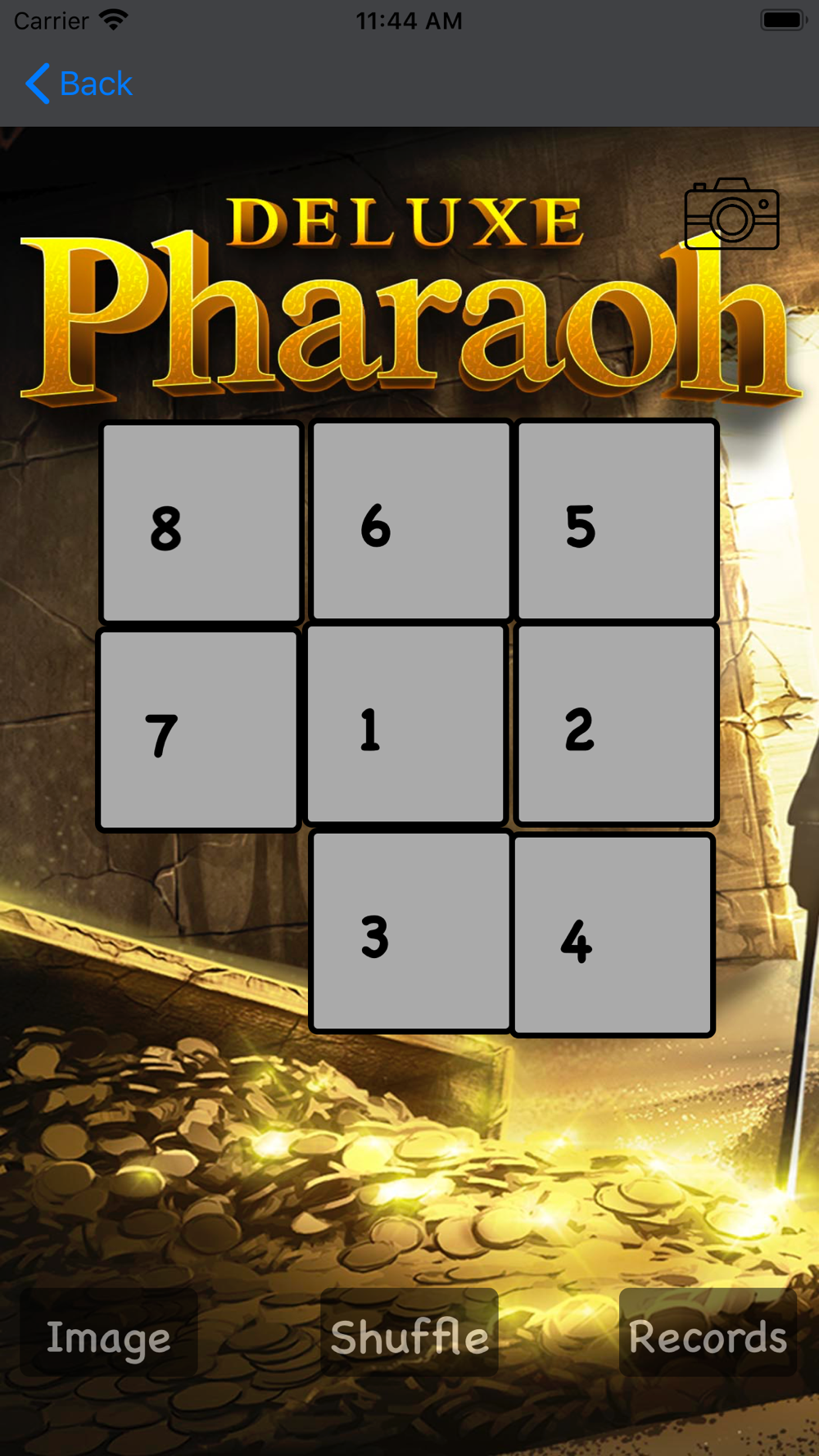 "Deluxe Pharaoh" is a game, that tests a person's ingenuity or knowledge. In a puzzle, the solver is expected to put pieces together in a logical way, in order to arrive at the correct or fun solution of the puzzle. "Deluxe Pharaoh" is an analogue of the game "Fifteen". The game has two difficulty levels. Game has 30 puzzles.