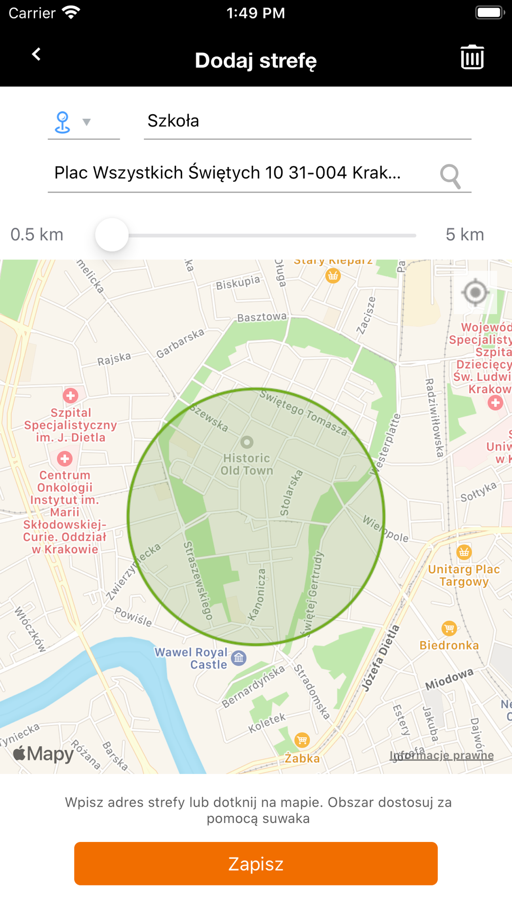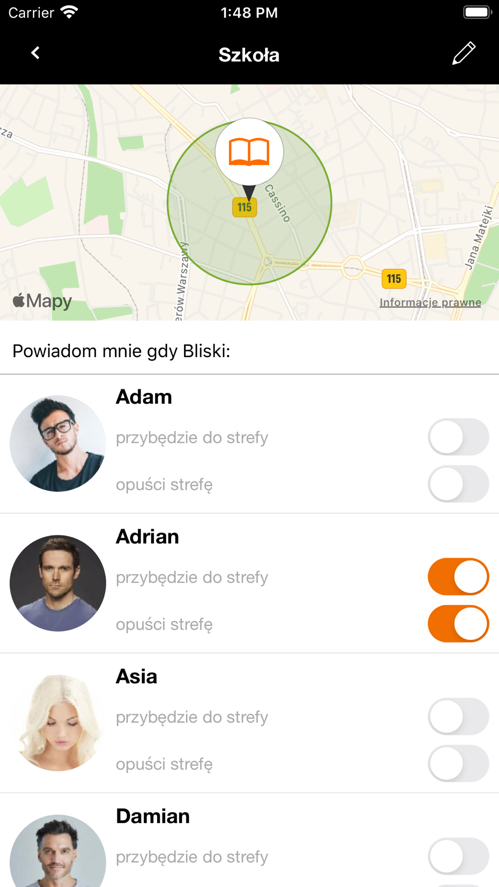 Wystarczy, że ustawić strefy bezpieczeństwa i Znajdźmy się automatycznie powiadomi Cię, gdy Bliski wejdzie lub opuści wybrane miejsce.