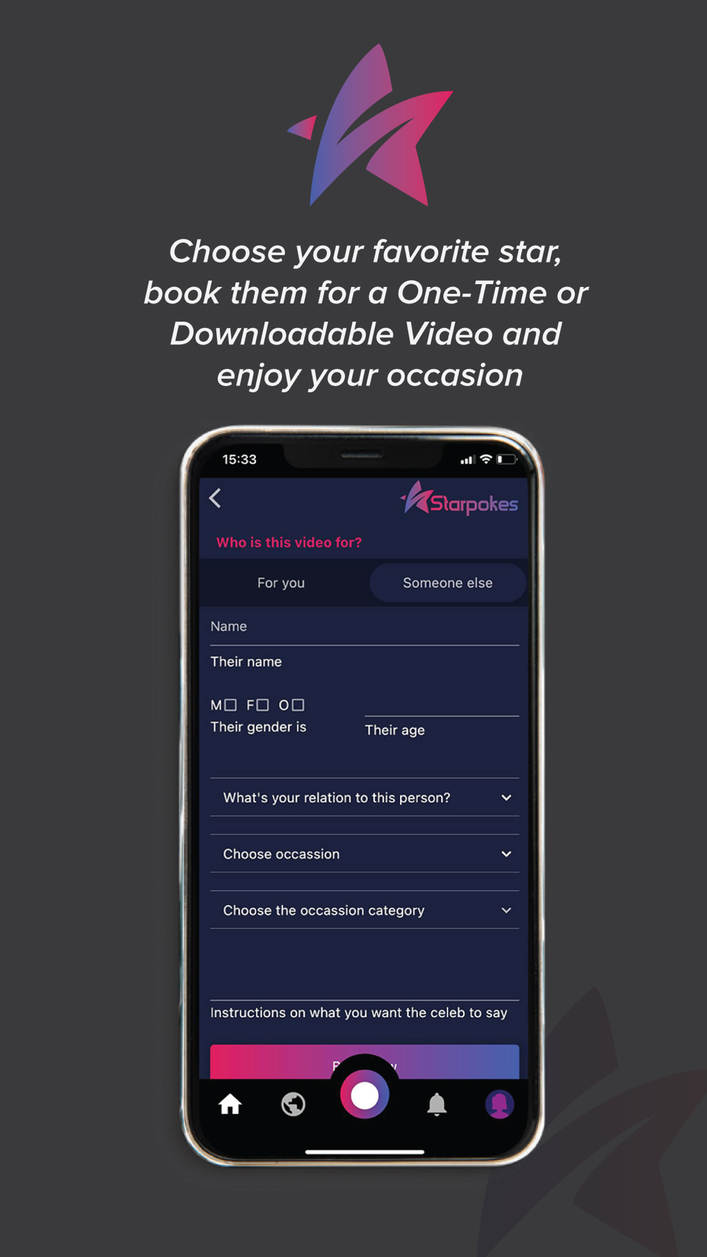 App that interconnects users with VIP's through private videos. A user may request a video from a VIP connected to an occasion with a specific text/act expected from the VIP. The VIP can accept or ignore the request and return the video, in which case a payment is done from the user's side to the VIP.