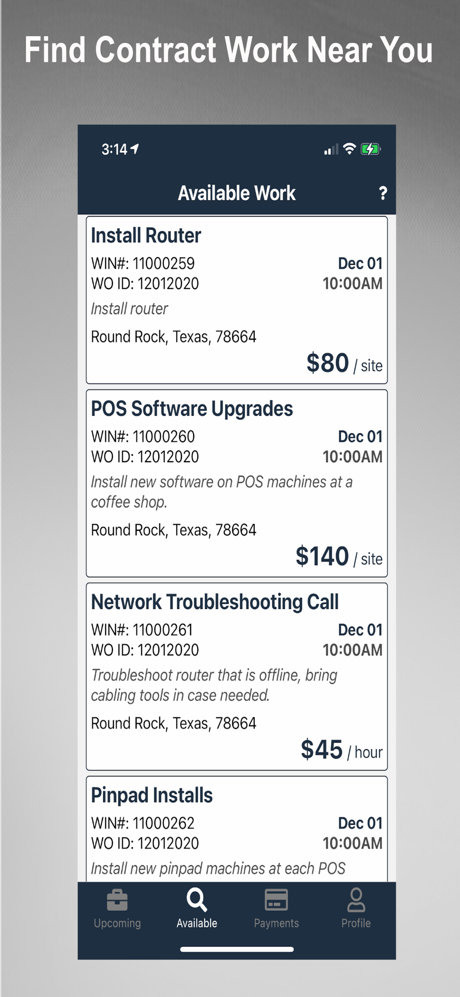 Contractors are able to search for available work and manage their work flow using the convenient SW9 mobile app - all with no fees attached!