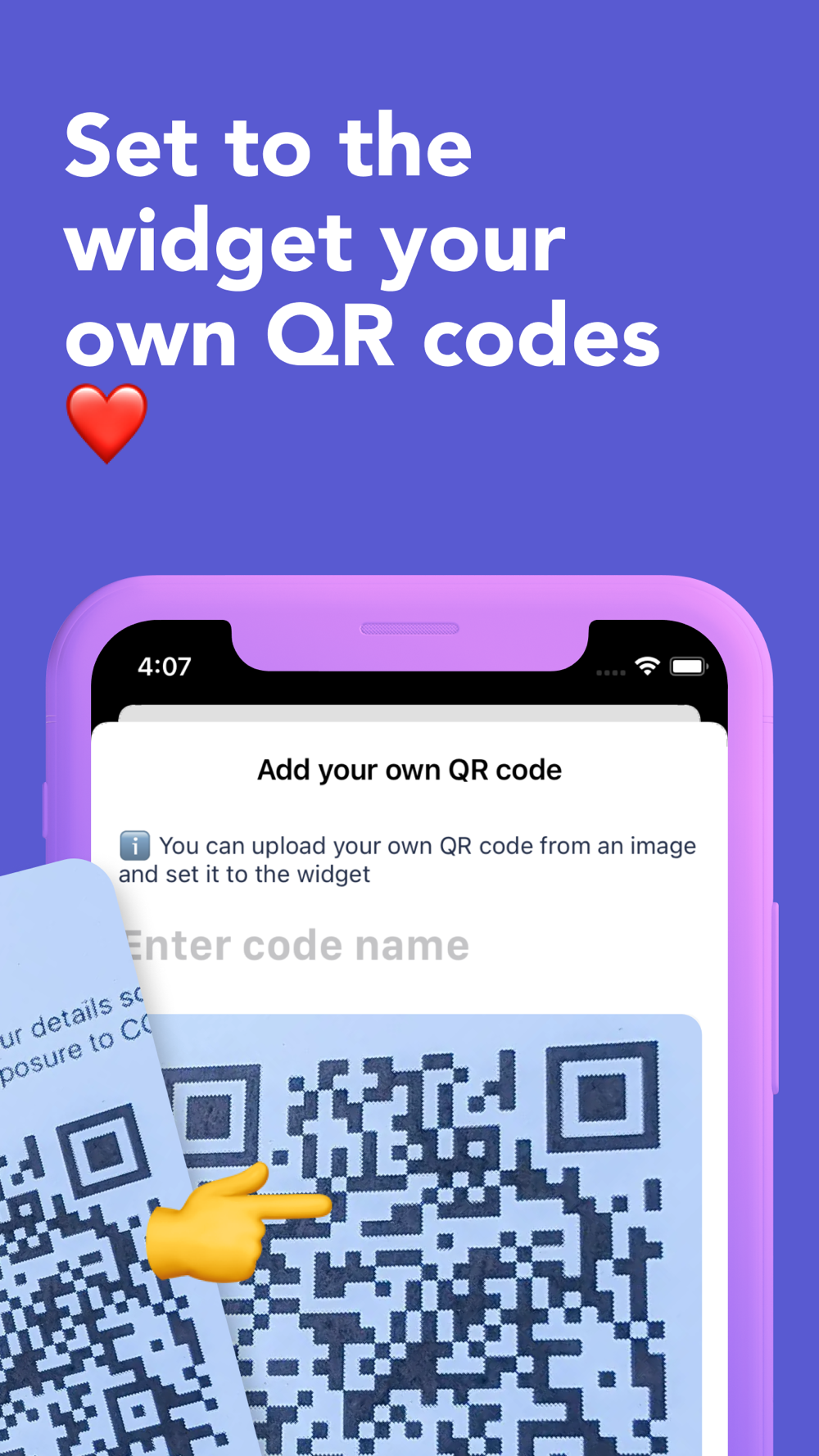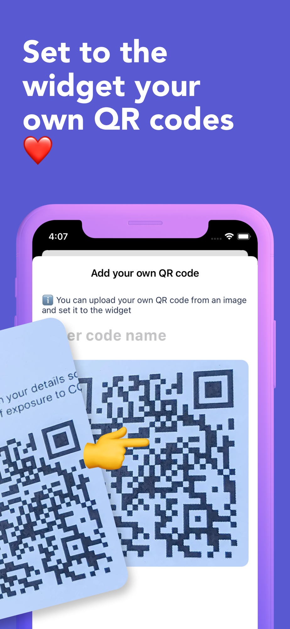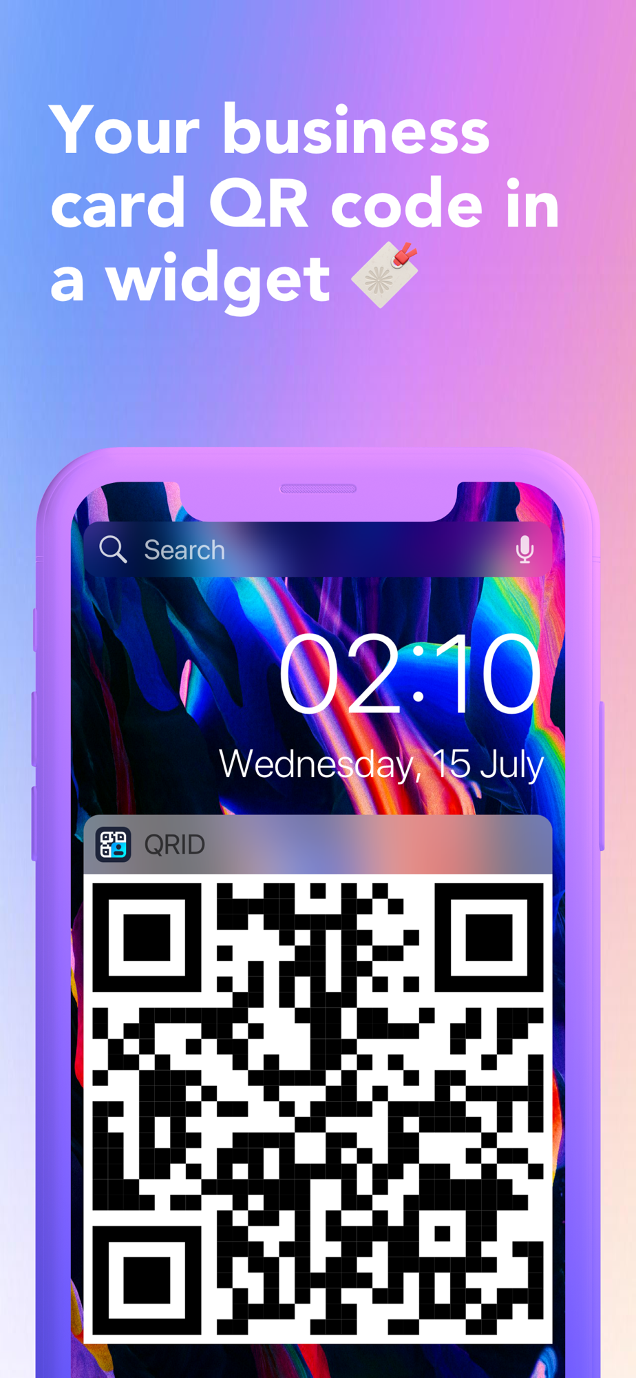 The QR code of your digital business card is placed in the widget on the home screen. This means that it is available with one swipe at any time!