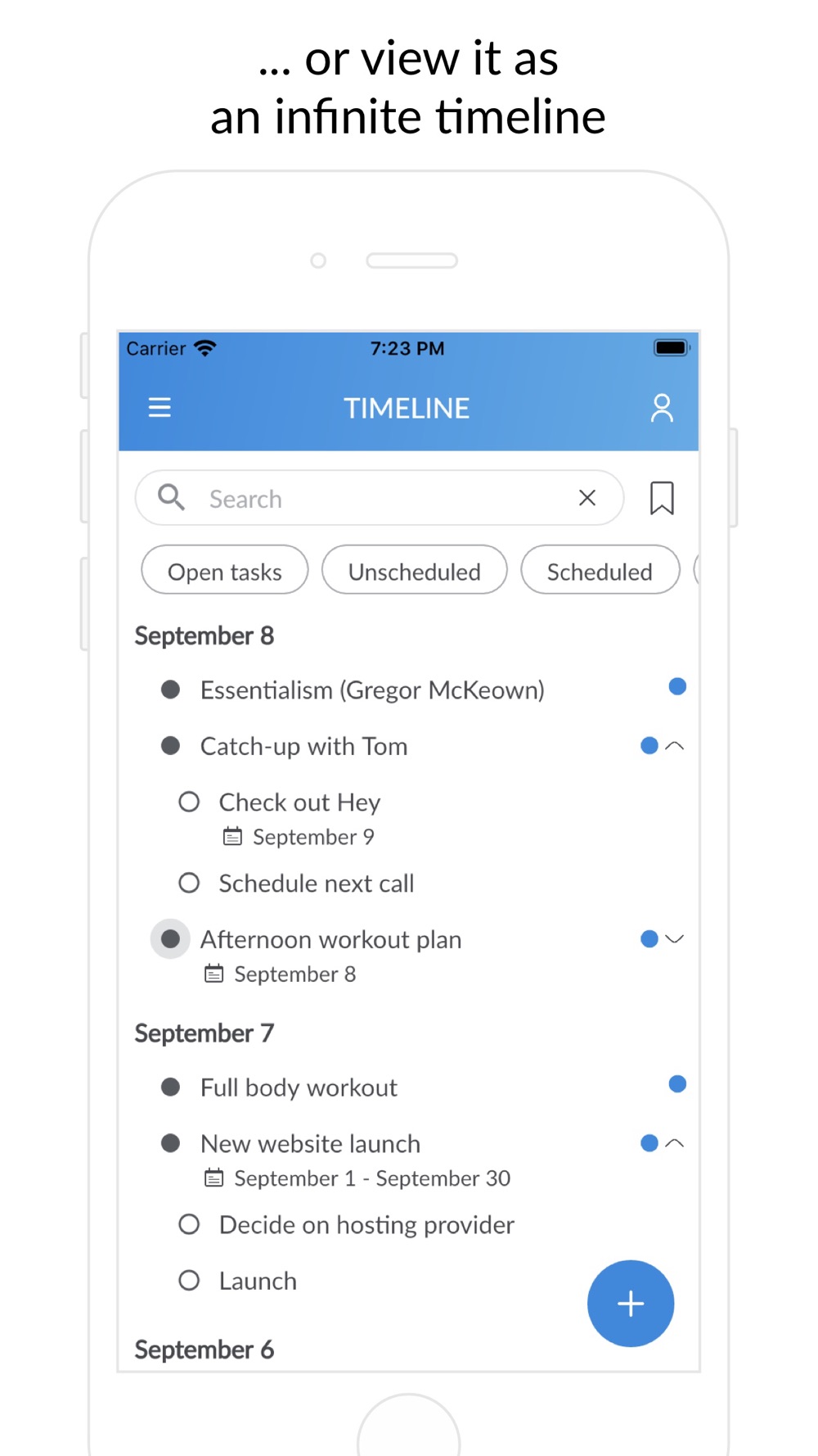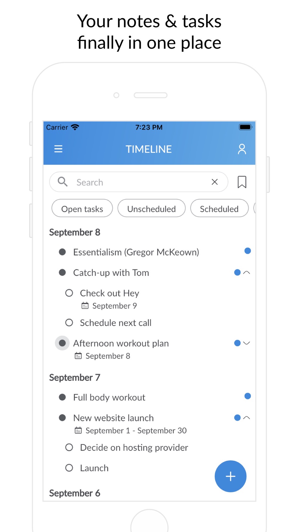 Scale-up infinitely: When things get messy, create sub-notes or sub-tasks. Every note - or task - in Faden can also be a list. So you can create virtually infinite hierarchies.