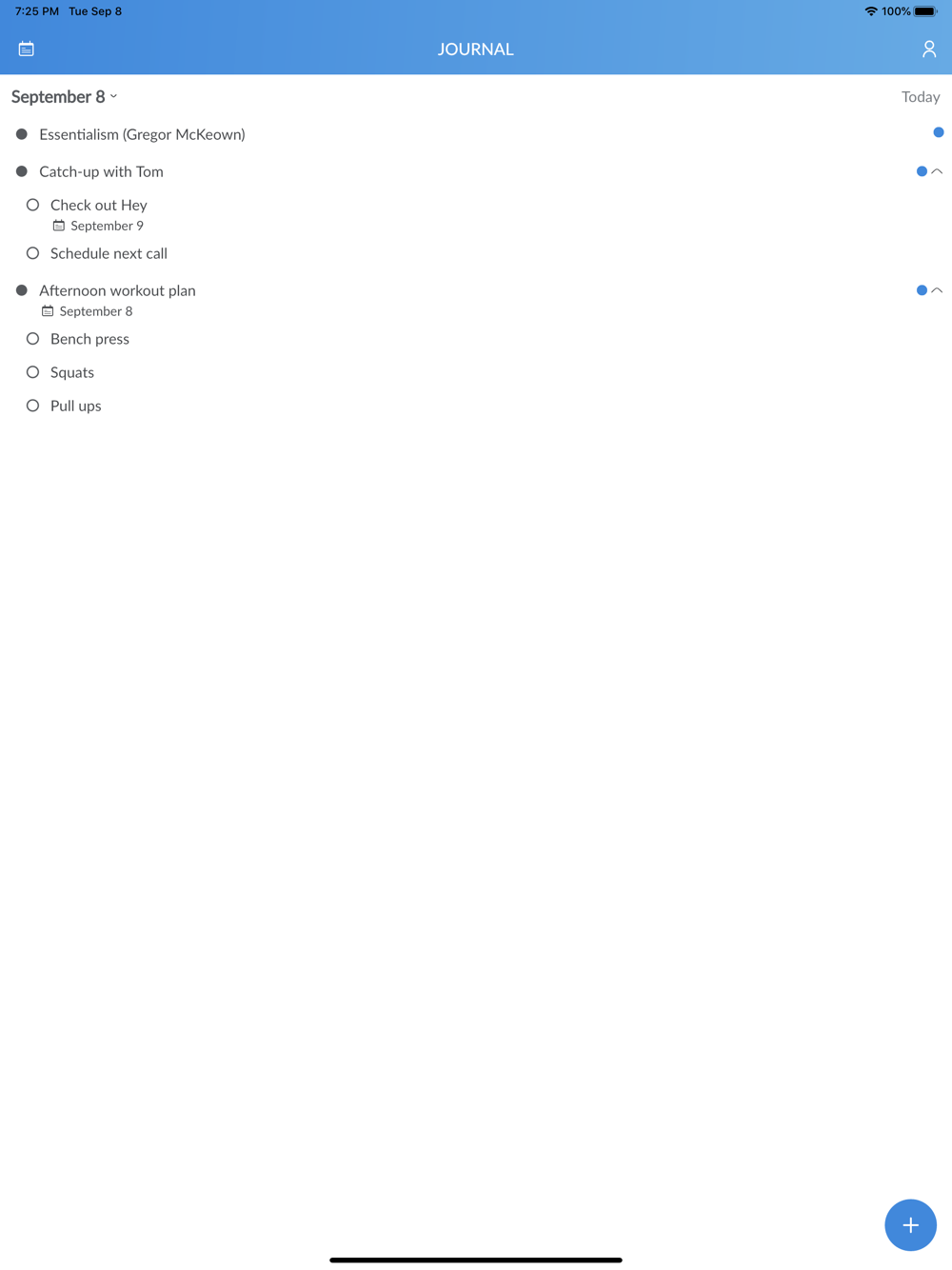 Always stay organized: With Faden, you can take notes, write about your day, summarize books, or anything else you would use a journal for. You can also create tasks (or lists of tasks) for things that require action.